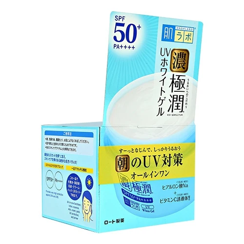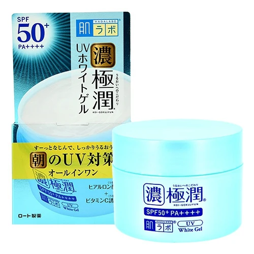 Универсальный гель HADA LABO UV White Gel с высокой защитой SPF 50+ для утреннего использования.