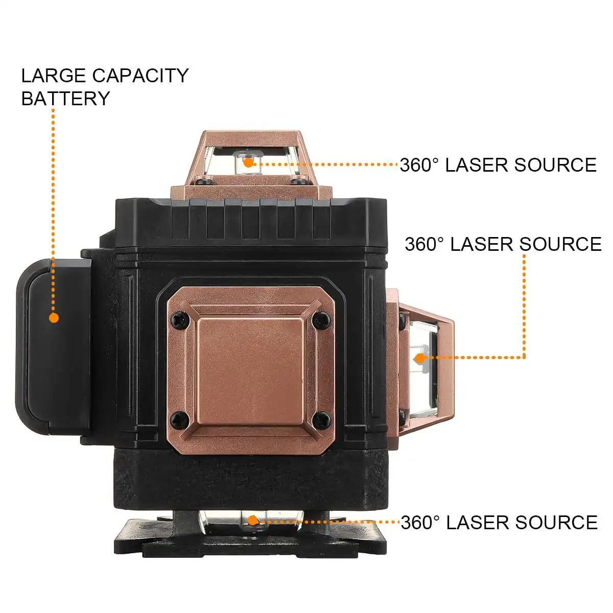 16/12/8 линия 360 ° Горизонтальный Вертикальный крест 4D зеленый светильник лазерный уровень самонивелирующийся супер мощный лазерный луч |