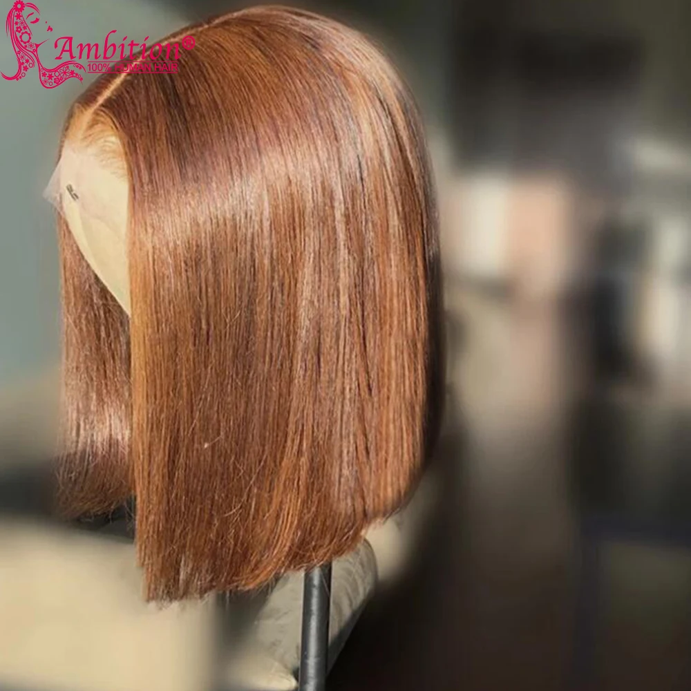 Амбиции тупой огранки Боб коричневый шрифт парики предварительно выщипанные кружевные волосы парики для женщин полностью человеческие волосы Закрытие парики отбеленные узлы