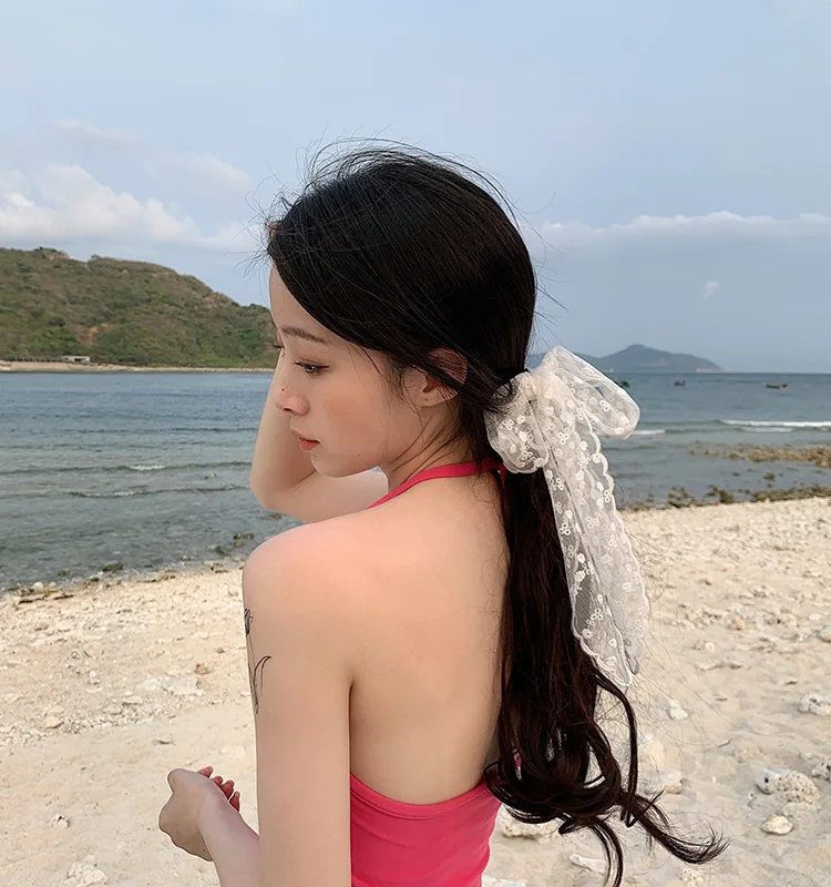 Летняя Фея кружевной бант Шелковый шарф повязка на голову Женский завязанный волос сетка красный 2021 Новый стример головные уборы аксессуары для волос