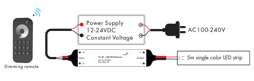 2) Match with 2.4G single zone or multiple zone dimming remote control.