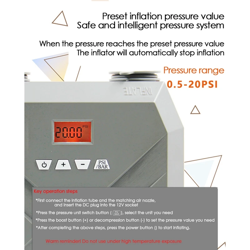 Штепсельная Вилка прикуривателя 12 В постоянного тока: воздушный насос 12 В, подключение к автомобильному Штепселю 12 В постоянного тока. Оснащен преобразователем батареи, может использоваться в любом месте, если у вас есть подходящий аккумулятор.