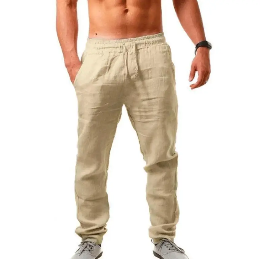 Осенние льняные брюки, летние модные мужские повседневные брюки с эластичной резинкой на талии, 9 цветов, белый, серый, хаки, для фитнеса, уличная одежда, S-4XL