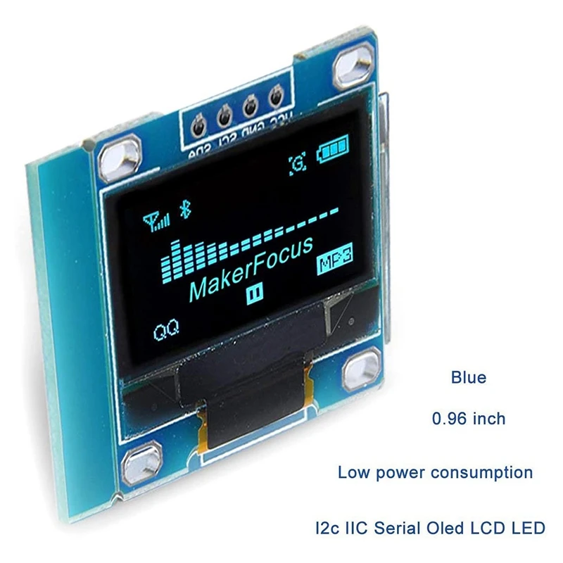 Размер: 0,96 дюйма, Разрешение: 128*64, цвет: синий, Угол обзора: более 160 градусов, поддерживаемые платформы: для arduino, серии 51, серии MSP430, STIM32 / 2, чипы SCR