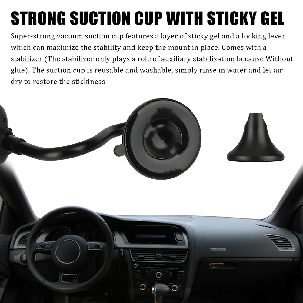 1. Высококачественный Алюминиевый Гусиная Шея: алюминиевая гусиная шея автомобильного держателя телефона высокого качества. Вы можете отрегулировать угол обзора, сгибая гусиная шея. Мы включили стабилизирующее устройство в посылка, чтобы зафиксировать гусиную шею, чтобы предотвратить тряску.