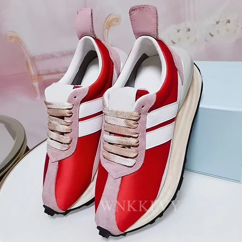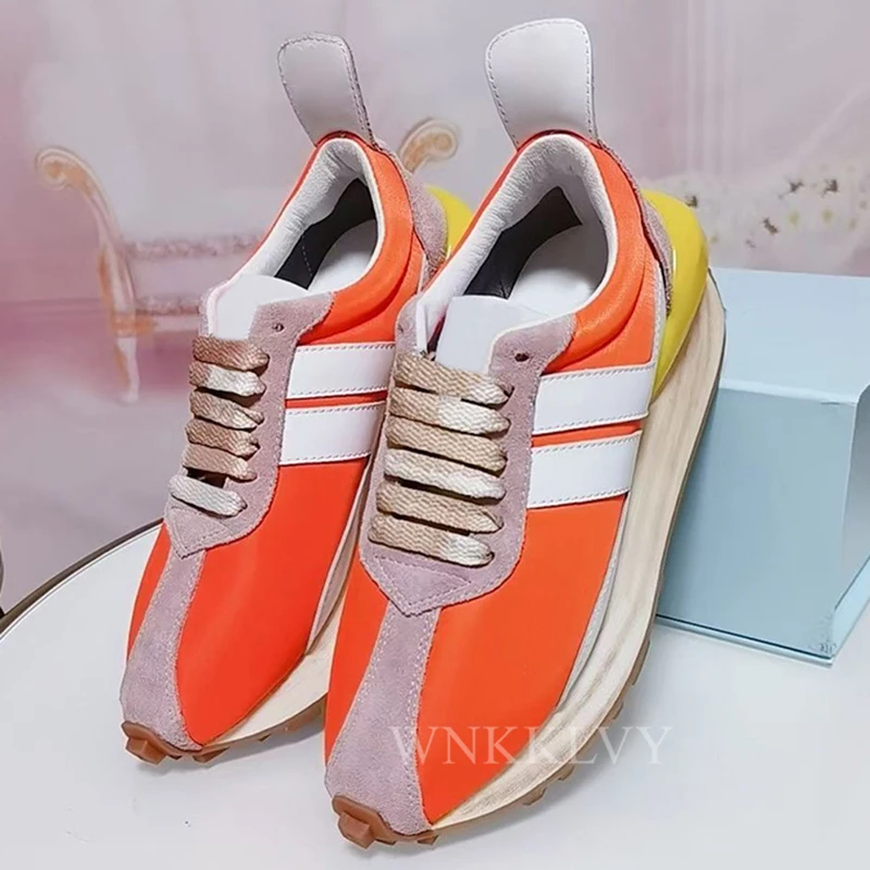 Весенняя повседневная обувь для влюбленных на толстой подошве; Женские разноцветные кроссовки на плоской подошве со шнуровкой в стиле пэчворк; Прогулочная теннисная обувь; 2021 унисекс