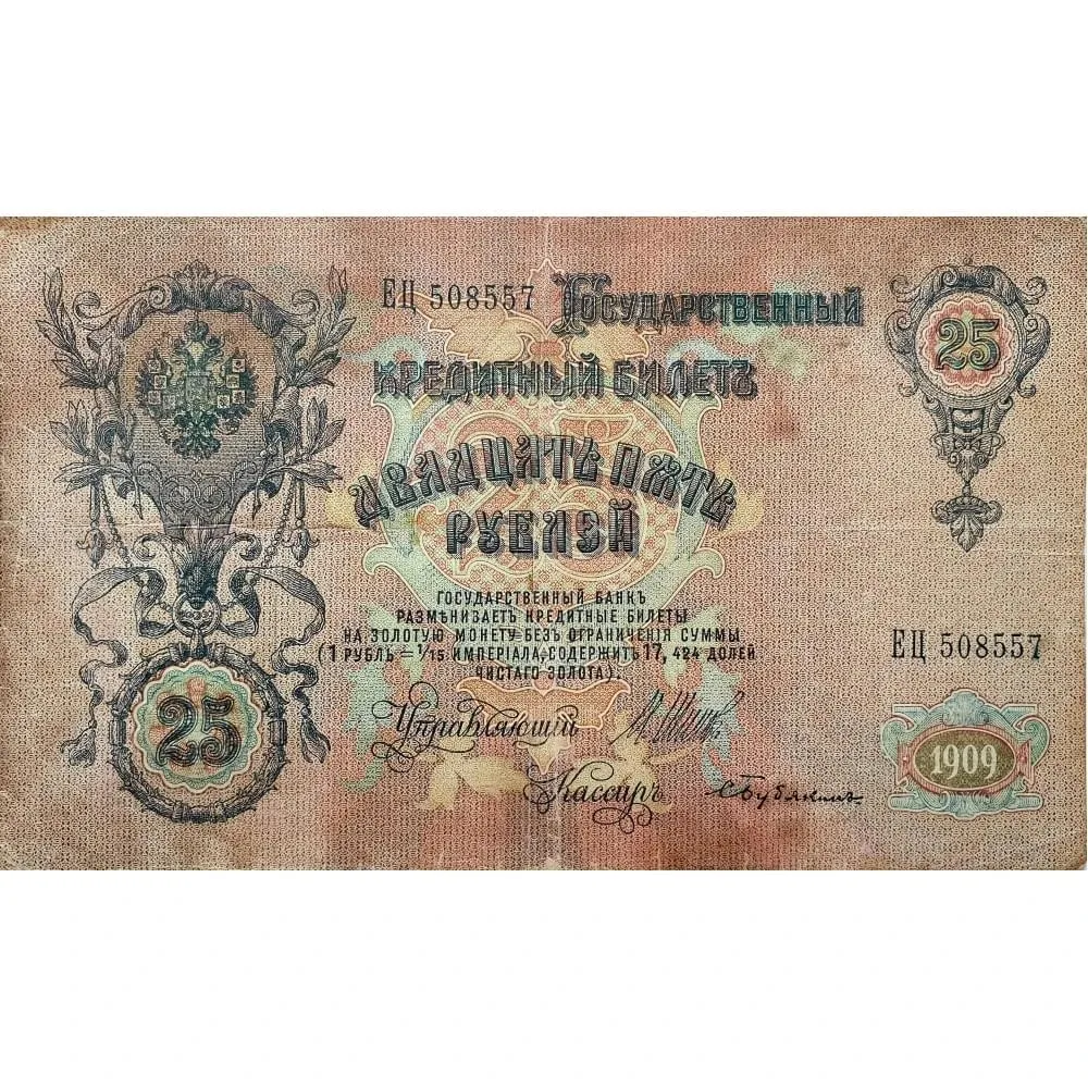 Банкнота 25 рублей 1909 года, Царская Россия, Российская Империя, оригинал 100%