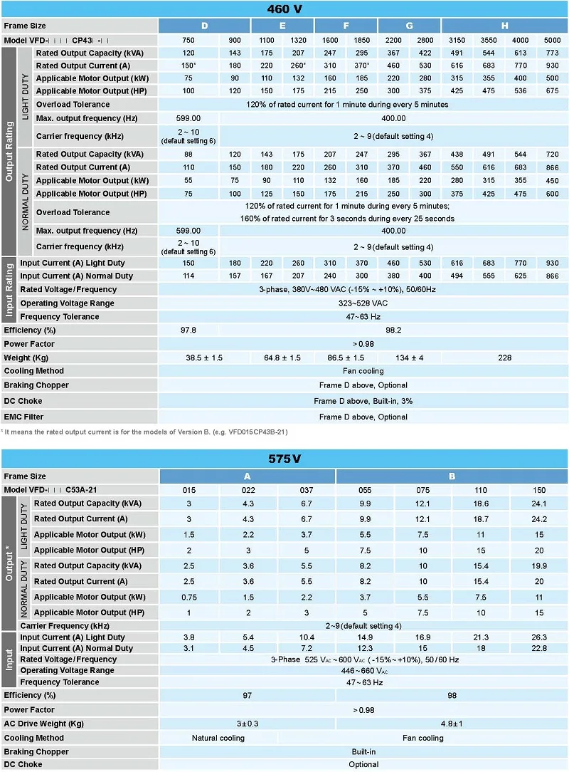 100% Новый оригинальный CP2000 Инвертор серии VFD040CP4EA-21 380V 4KW трехфазный преобразователь частоты