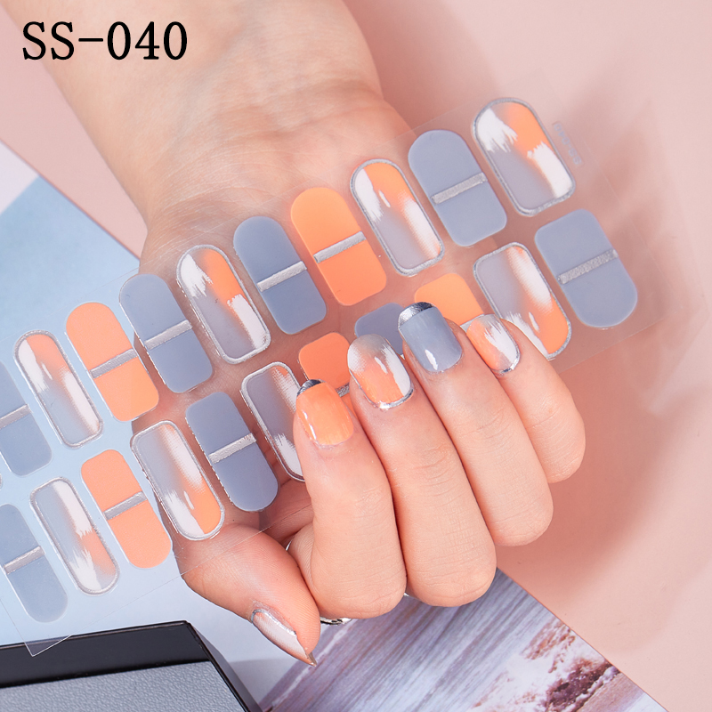22 наконечника/лист, новая серия SS, наклейки для дизайна ногтей, блестящий лист с блестками, простой летний слайдер, полное покрытие, обертывания для маникюра, тату