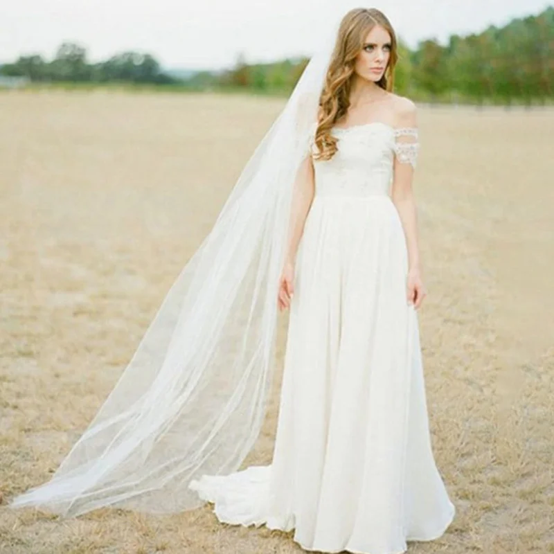 Фата свадебная TOPQUEEN V30 мягкая одноуровневая с обрезанными краями длинная