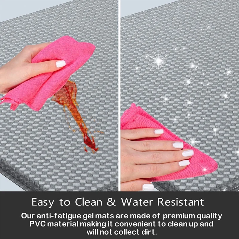 [Легко моется и водонепроницаемость] Наши гелевые коврики с защитой от усталости изготовлены из высококачественного материала, что делает его удобным для очистки и не собирает грязь. Материал отталкивает воду, жидкости, масла или пятна, и если что-то проливается, это делает легкой очистку. Просто протрите их влажной тканью и при необходимости можно использовать ручной вакуум. Водонепроницаемая поверхность и прочный материал выдерживают испытание временем и помогают сохранить форму даже при длительном и тяжелом использовании.