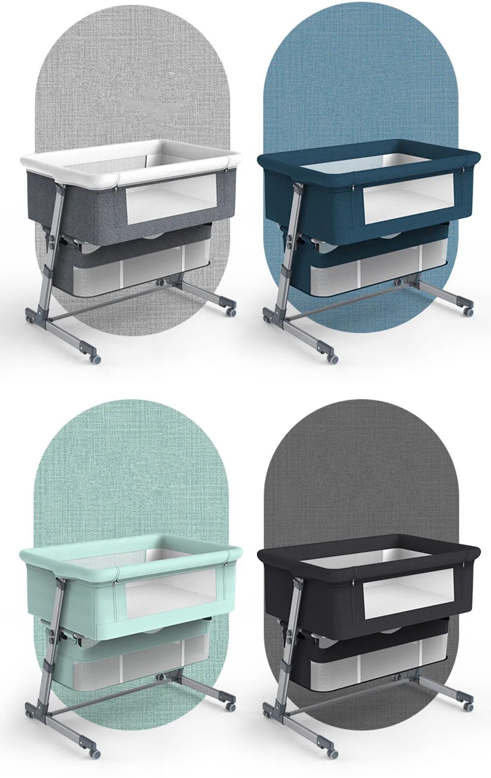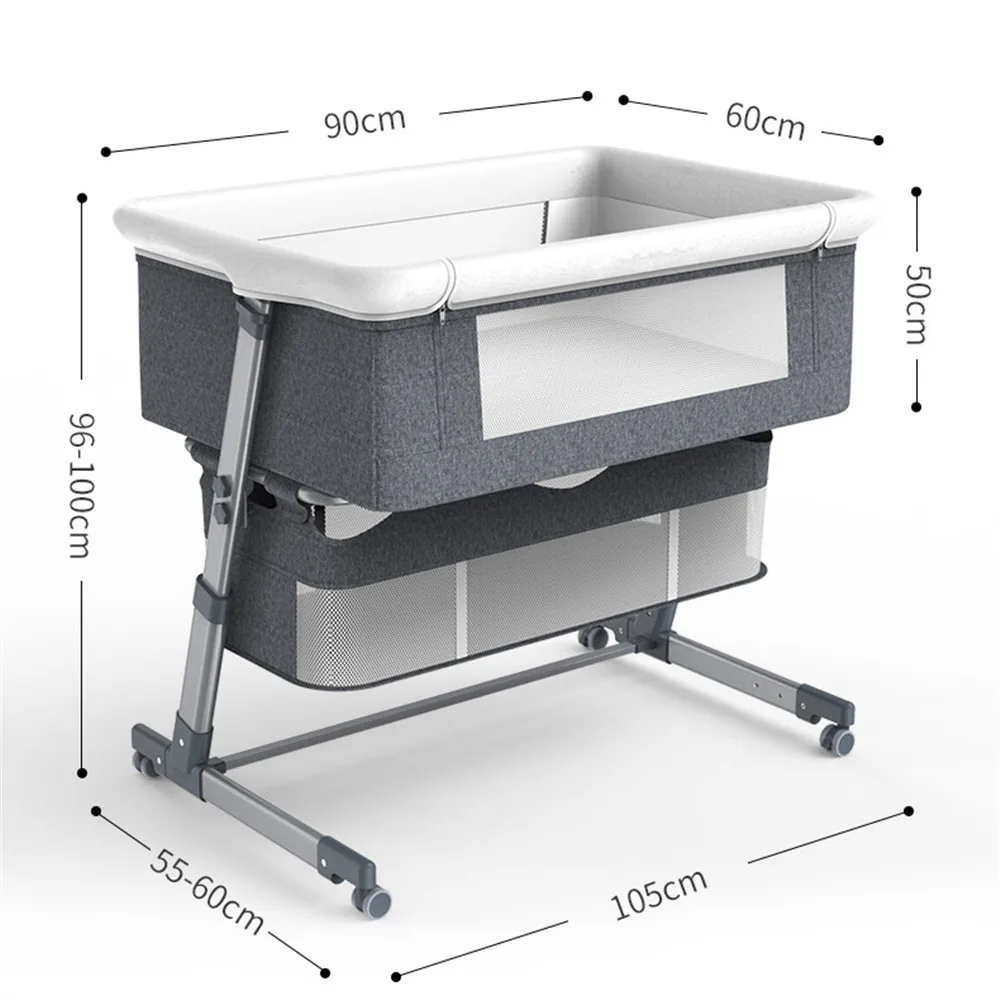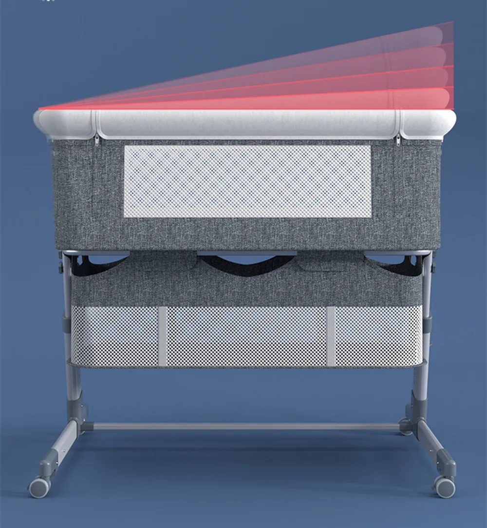 Функция: 5 уровней регулировки высоты, может быть соединена с большой кроватью, с роликами, может быть сложена.