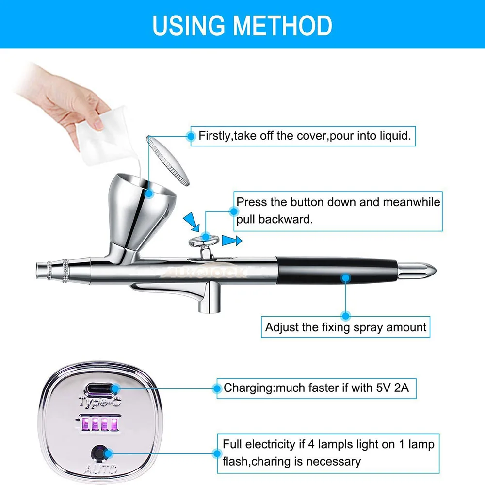 [Структура и широкий спектр применения] модный внешний вид, без отверстий в корпусе портативный и компактный, удобный для переноски. Эту ручку можно использовать для художественной живописи, украшения тортов, косметики, нейл-арта, поделок, раскрашивания моделей, иллюстраций, временных татуировок, хобби и т. д. Этот беспроводной пистолет-распылитель также станет отличным подарком для семьи или друзей.