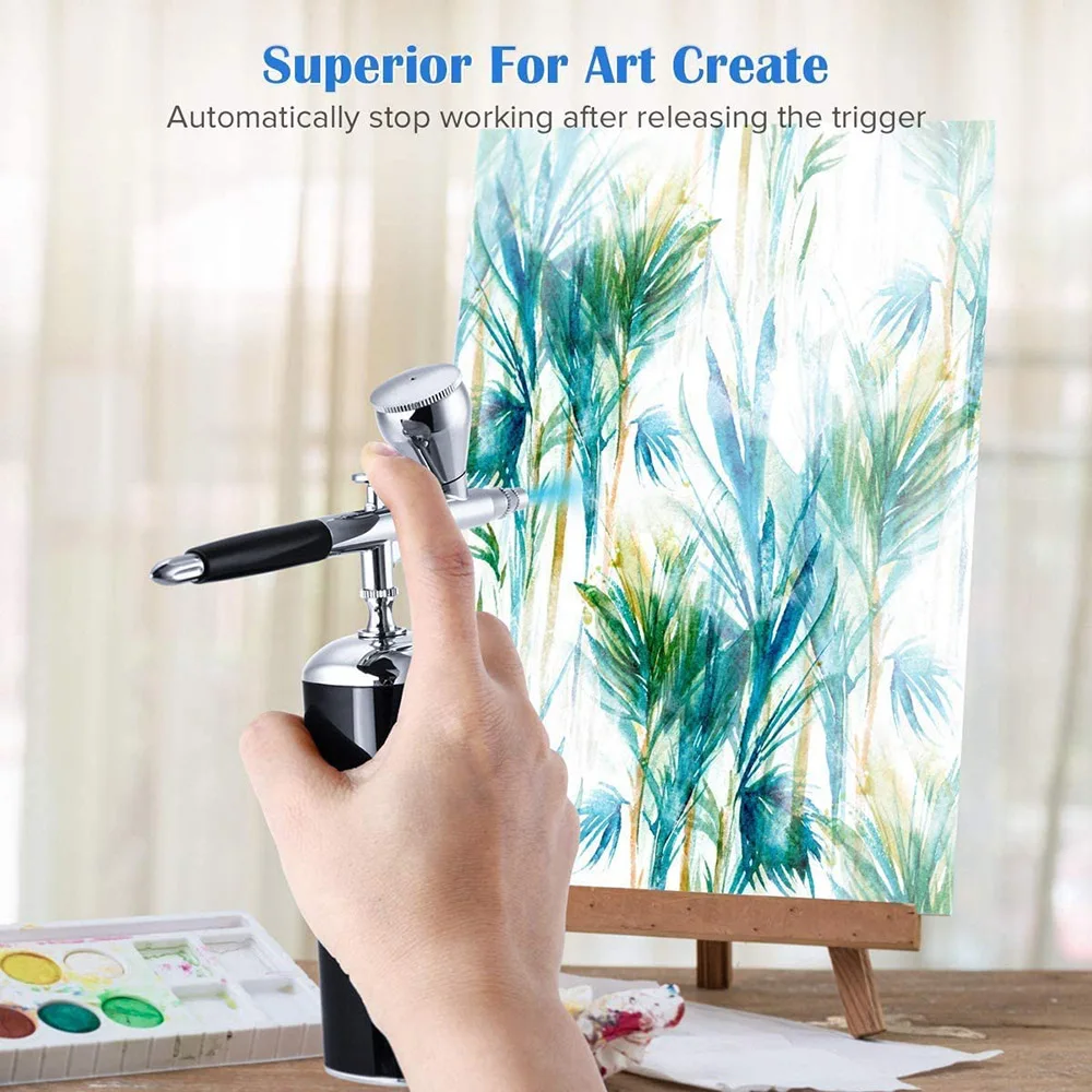 Более высокое давление воздуха и больший воздушный поток: по сравнению с аналогичными воздушными ручками на рынке, давление воздуха увеличено на 50%, воздушный поток достигает 20-25 фунтов на кв. дюйм, воздушный поток достигает 6-8 л, А остальные только 12-15psi, 6L. Насадка этой воздушной ручки составляет всего 0,3 мм, поэтому она может распылять только акварельные краски, чернила, красители и соответствующим образом разбавленную краску. Используйте воду вместо разбавленной краски или других красок.