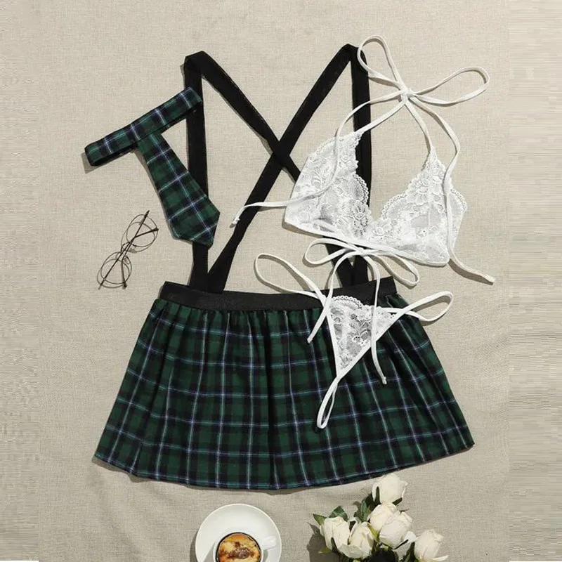 Женское сексуальное нижнее белье, школьная форма, сексуальная одежда, кружевной бюстгальтер для костюмированной вечеринки, мини-юбка, сексуальная одежда для девочек, школьная форма
