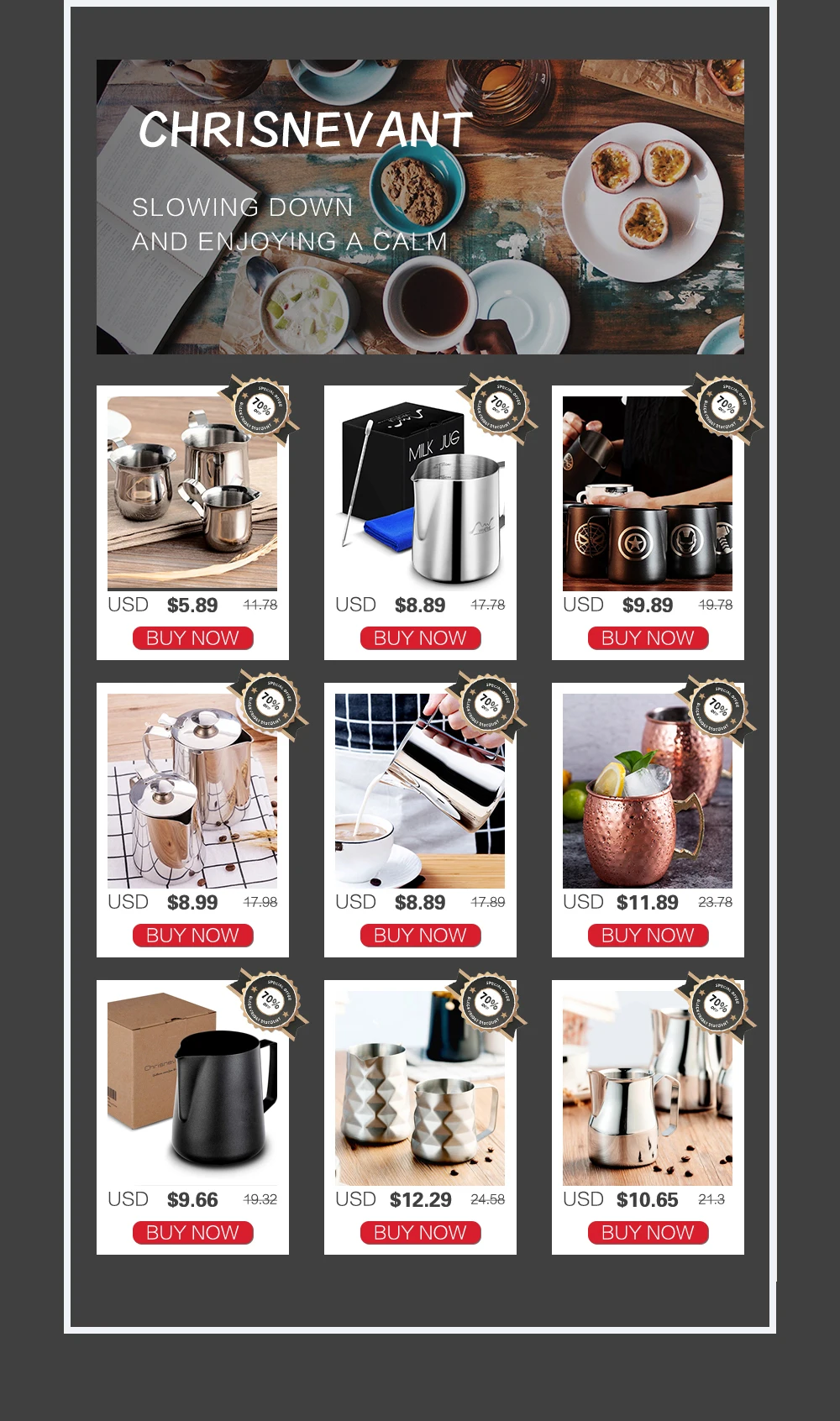 Магазина Chrisnevant Chef Store работает с 19.03.2020. его рейтинг составлет 93.96 баллов из 100. В избранное добавили 10385 покупателя. Средний рейтинг торваров продавца 4.8 в продаже представленно 141 наименований товаров, успешно доставлено 2257 заказов. 1292 покупателей оставили отзывы о продавце.