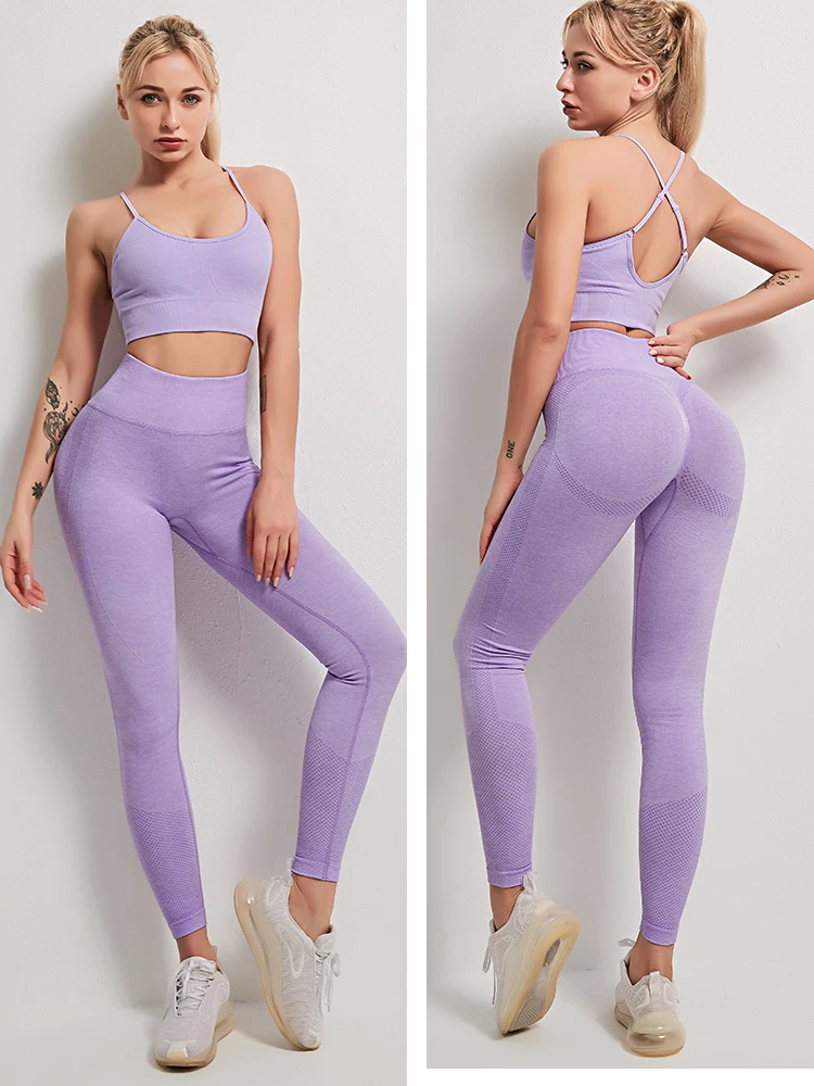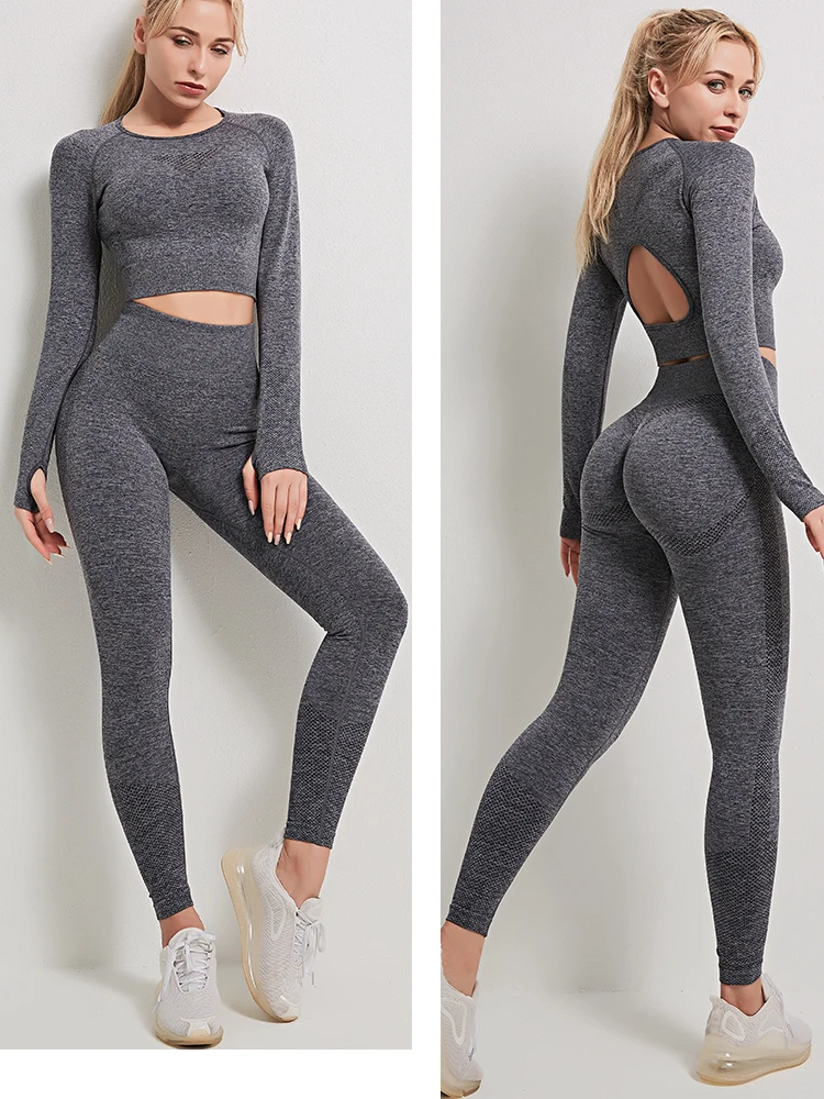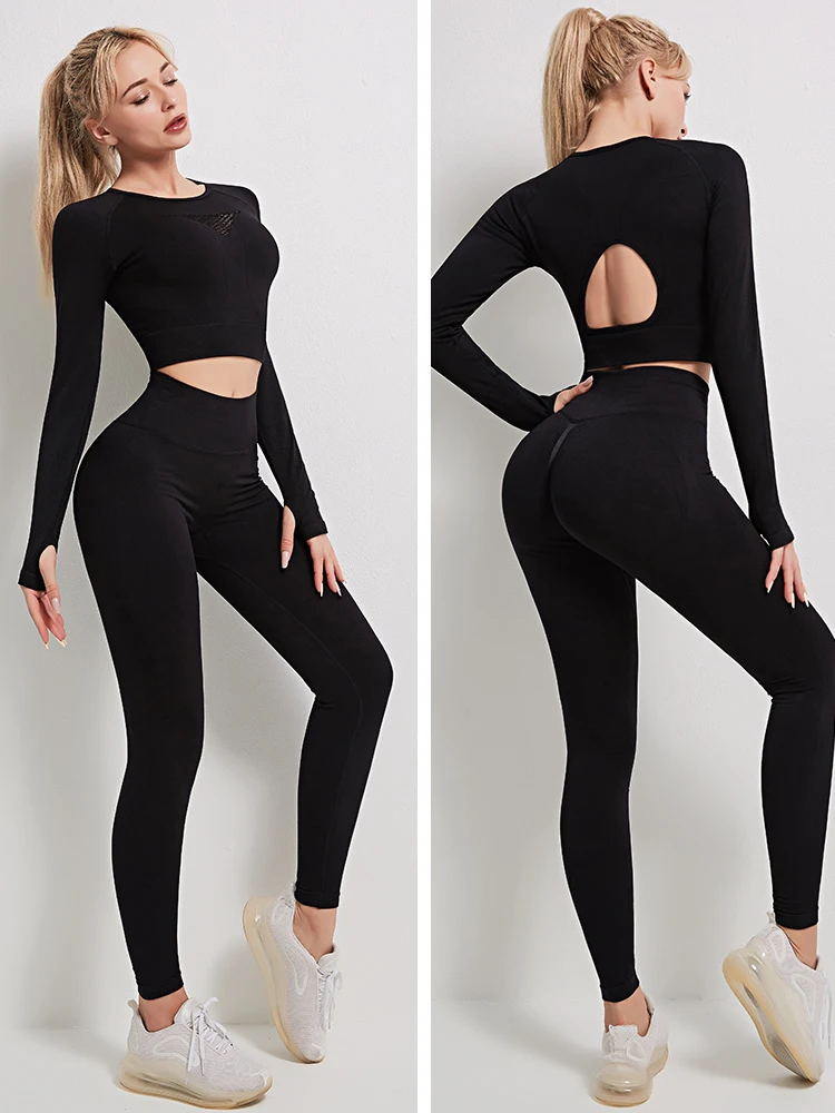 3 шт./компл., фиолетовый, черный, зеленый, серый, 2 шт., бесшовный Набор для йоги, дизайн с отверстиями на спине, спортивная одежда, леггинсы, спортивная одежда, Экипировка для йоги