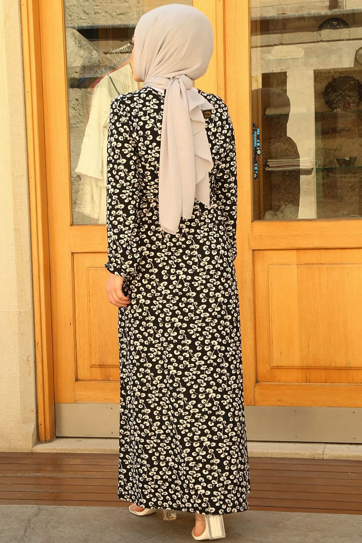 Платье с поясом, эластичными манжетами и узлом на подоле.