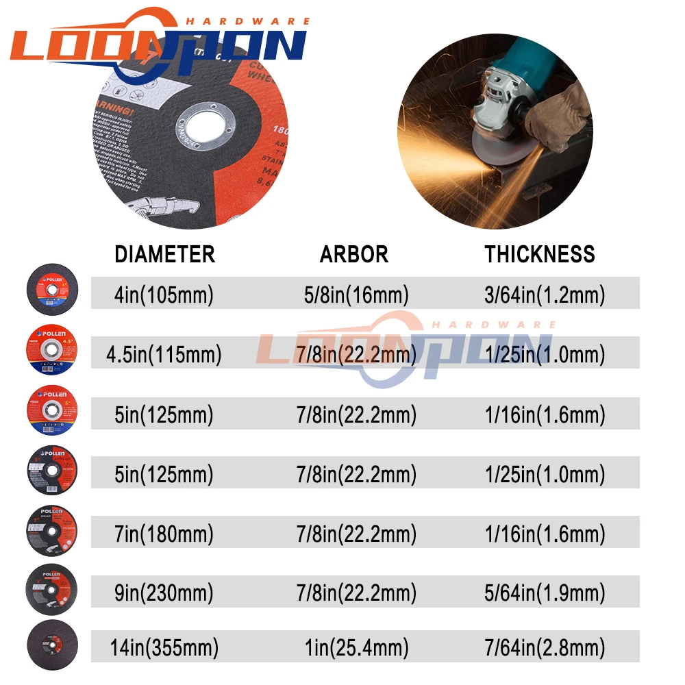 Диаметр: 75 мм/105 мм/115 мм/125 мм/180 мм/230 мм