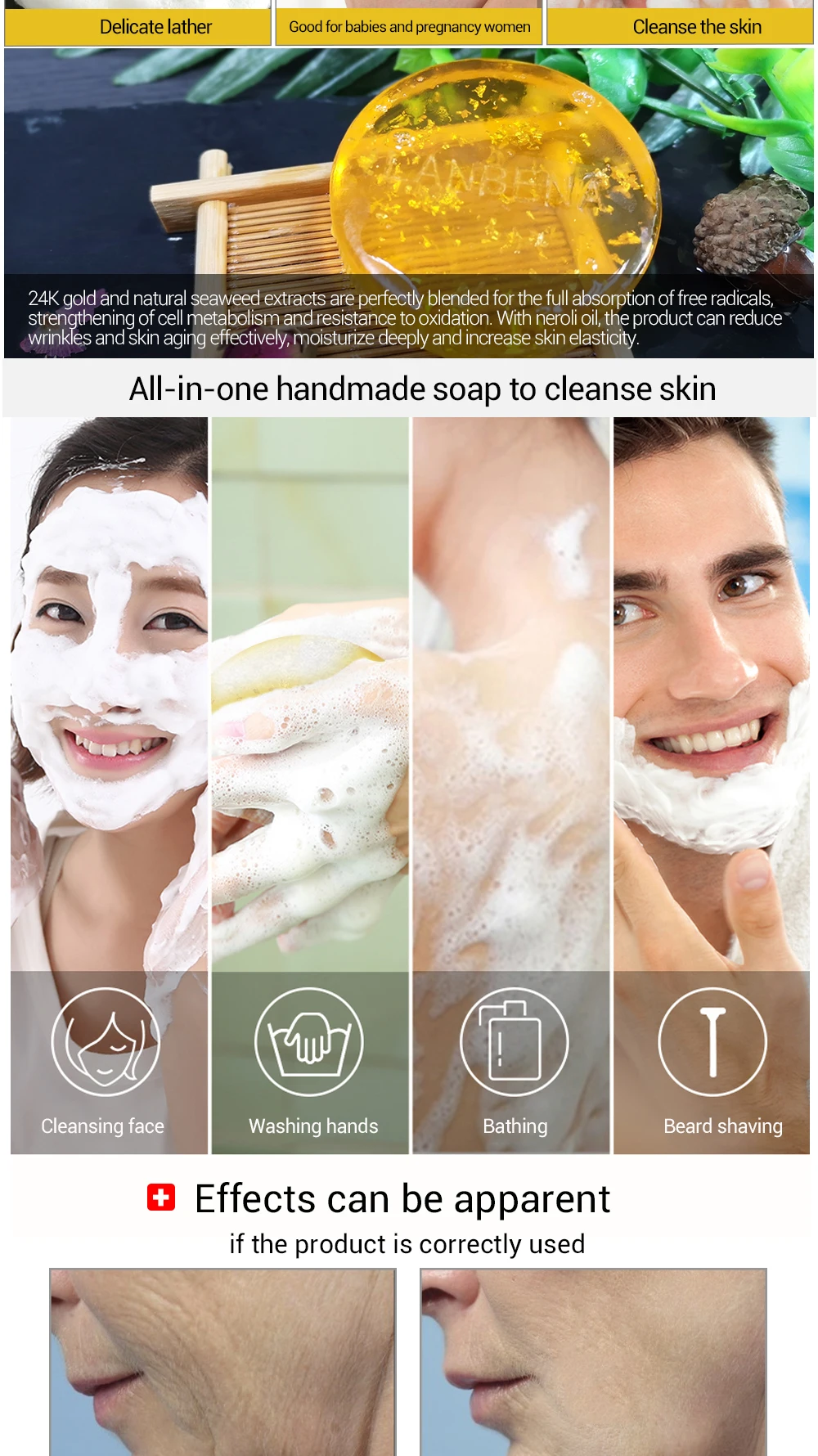 LANBENA уход за кожей лица Уход за кожей лица 24k золото ручной работы мыло для лица увлажняющее отбеливание морщин акне Cean инструменты товары для красоты