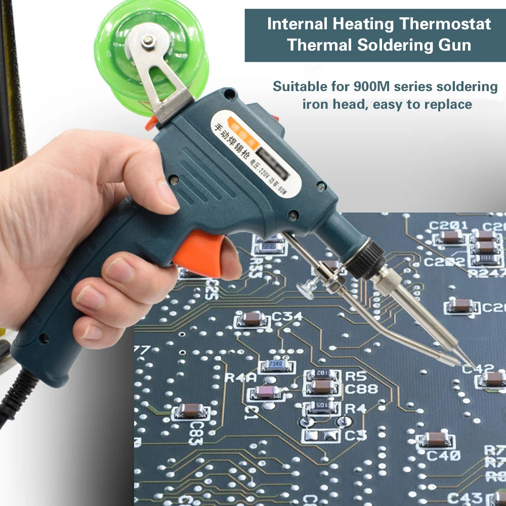 Паяльник, используемый компактный механический дизайн, работает проще. Жестяные проволочные леса могут быть разобраны, просты в использовании. Номинальная диаметром 0,8 ~ 2,3 мм оловянной линии. Это будет идеальным помощником для вас.