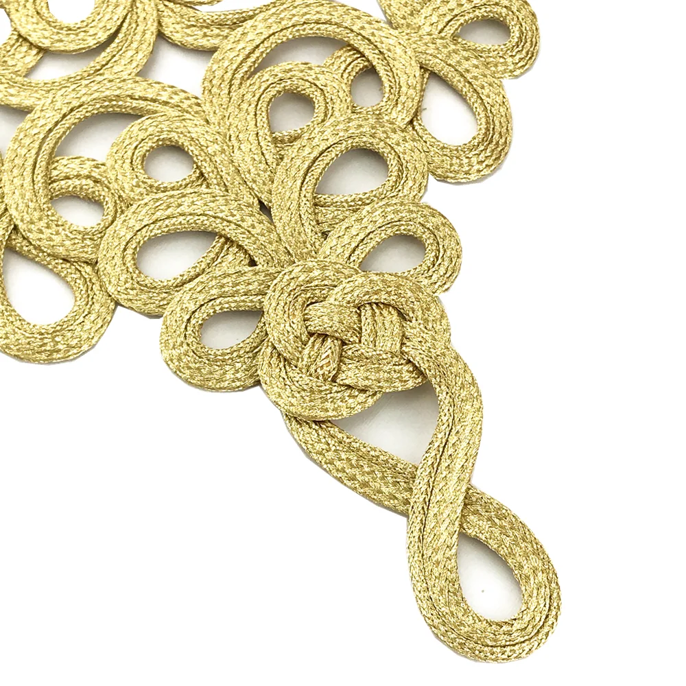 2 шт. Ручной работы золотой шнур патч Декоративный китайский узел пришить нашивки для одежды Униформа Ретро барокко аппликация AC1558