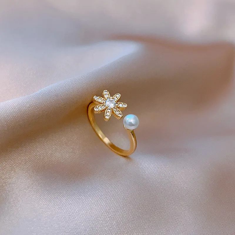 Элегантный винтажный набор колец с цепочкой и жемчугом, женский модный необычный Шарм, регулируемое Открытое кольцо, корейское ювелирное изделие