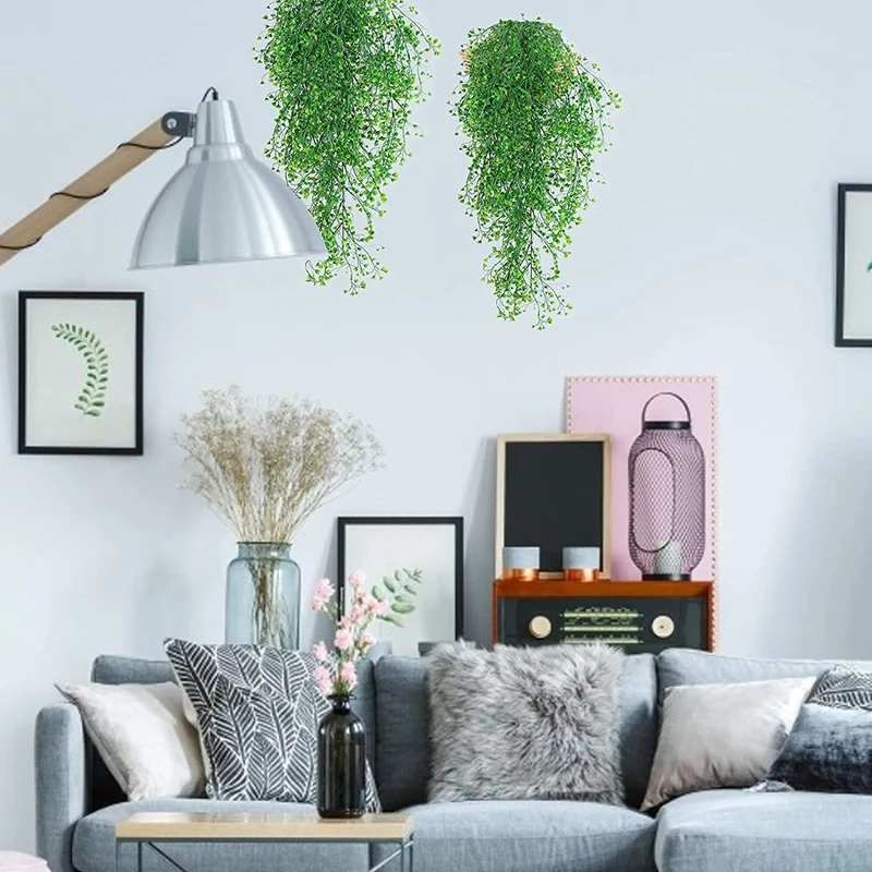 [Наружные искусственные Висячие растения] изготовленные из водонепроницаемого пластика, искусственные виноградные растения могут хорошо поддерживать себя под солнцем и дождем. Искусственные Висячие папоротники могут освещать внутренние и наружные пространства. Вы можете разместить их в спальнях, ванных комнатах, подвалах, кухнях, стенах, балконах, верандах, окнах, камерах, ограждениях, террасах и дворах.