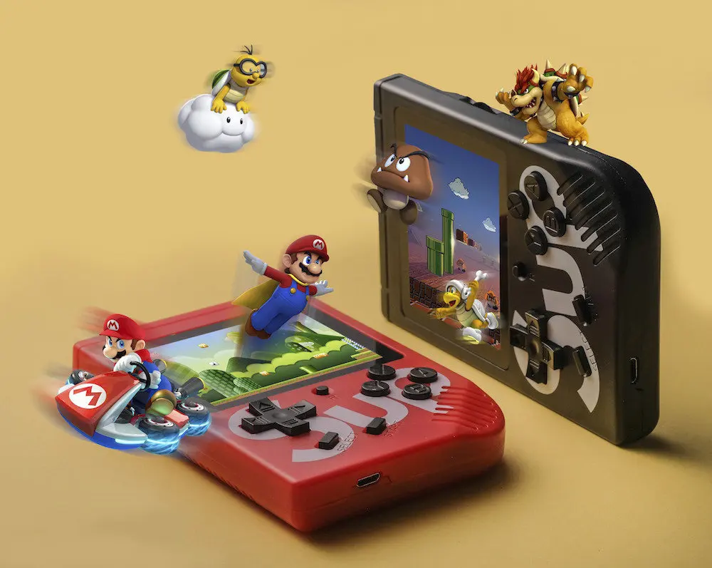 Компактная и стильная игровая консоль SUP Game Box имеет 400 популярных встроенных 8-битных игр.Платформеры, головоломки, стрелялки, стратегии – каждый игровой жанр обширно представлен в огромной библиотеке классических мини–игр Game Box (Супер Марио, Танчики, Бомбермэн и многие другие).