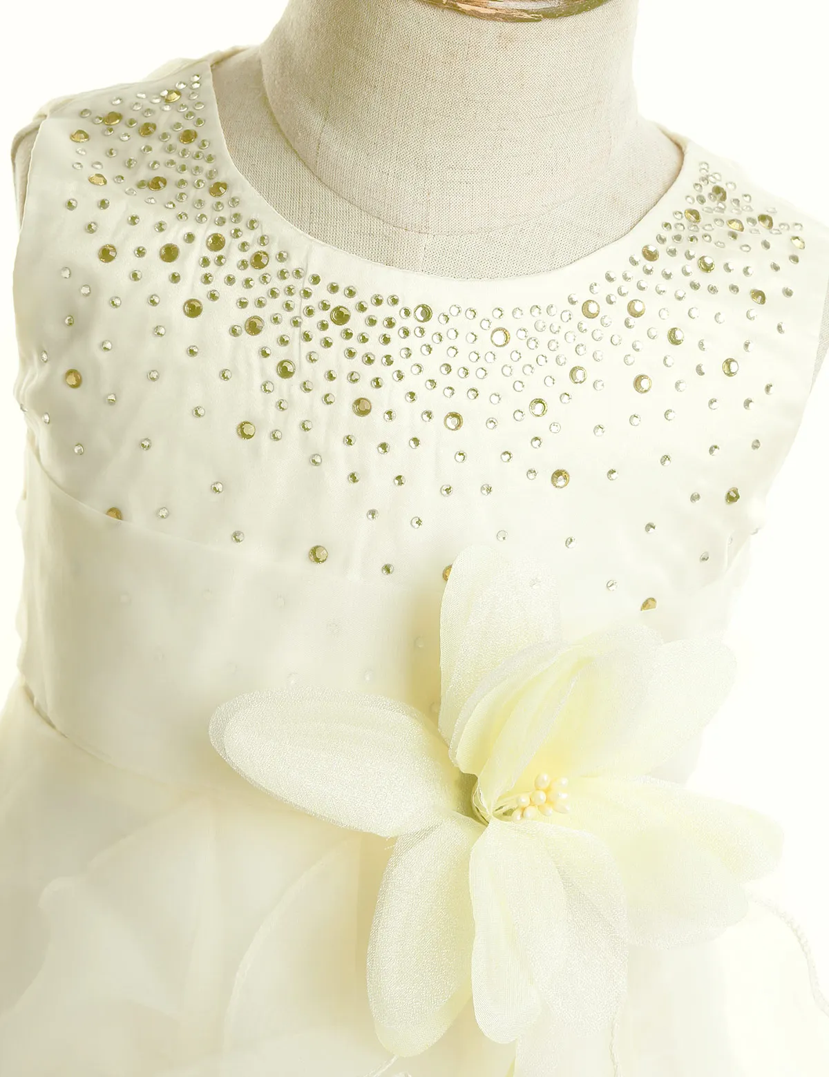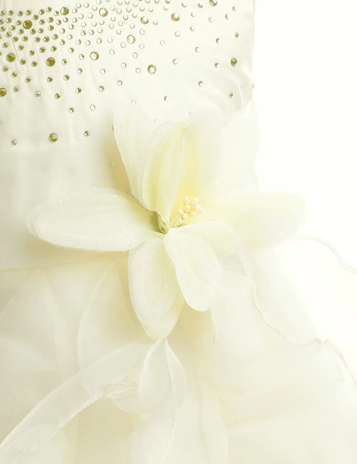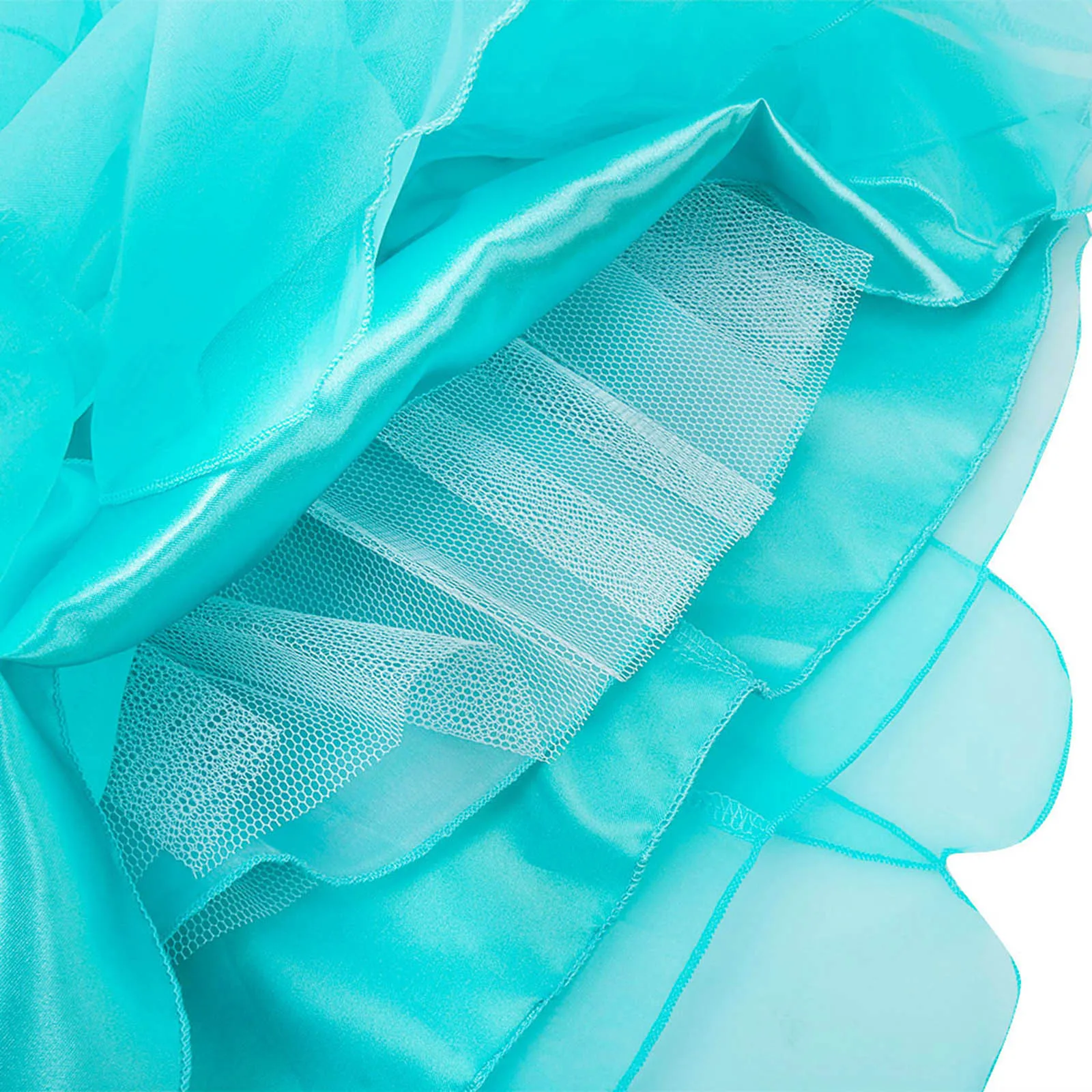 3 слоя юбка, многослойное платье; Верхний слой из органзы с прикрепленными украшение в виде оборок, 1 слой сатина и 1 слоя подкладочной ткани с дополнительной сетчатой нижней юбкой для придания дополнительного объема.