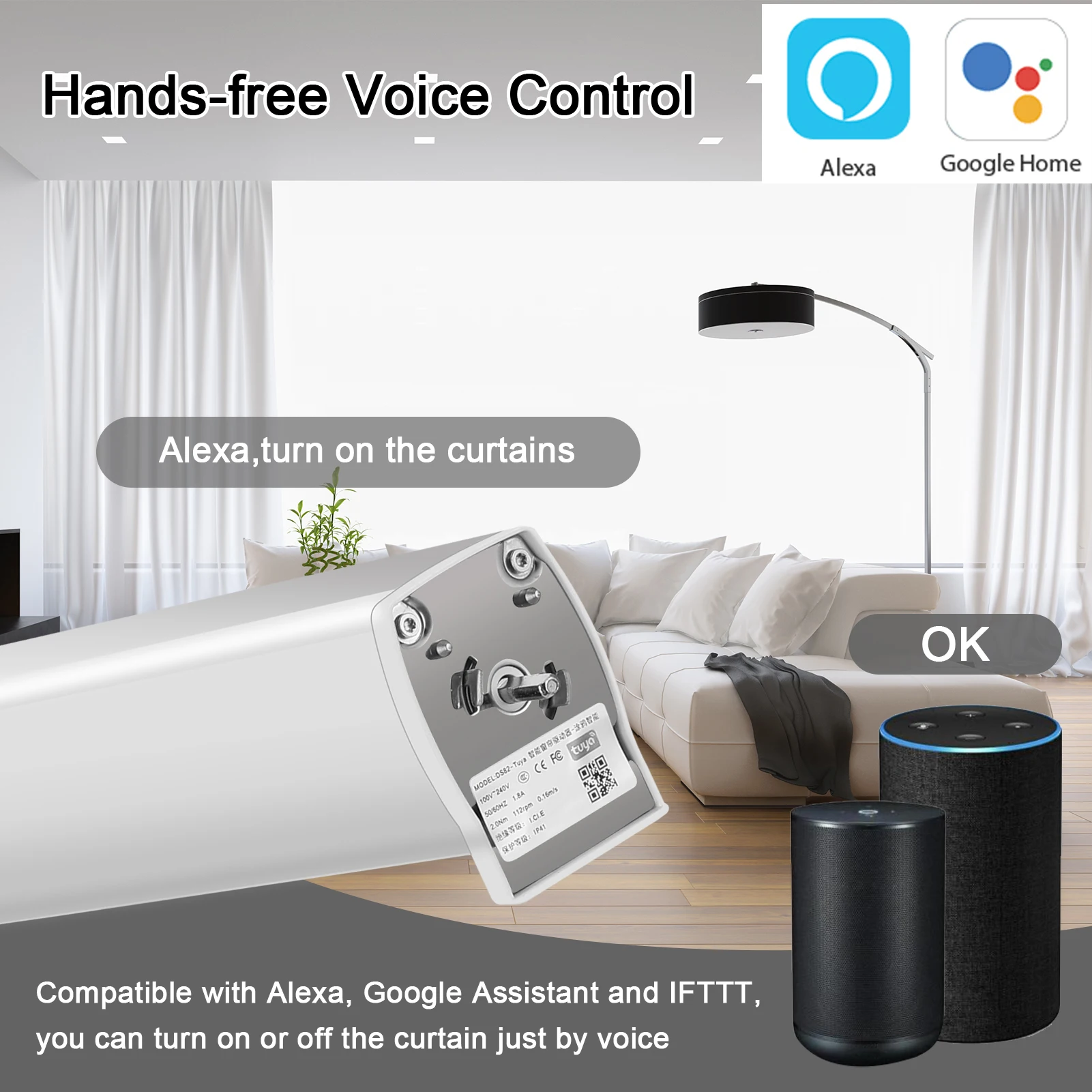 Совместим с Alexa, Google Assistant и IFTTT, вы можете включить или выключить занавес только голосом.