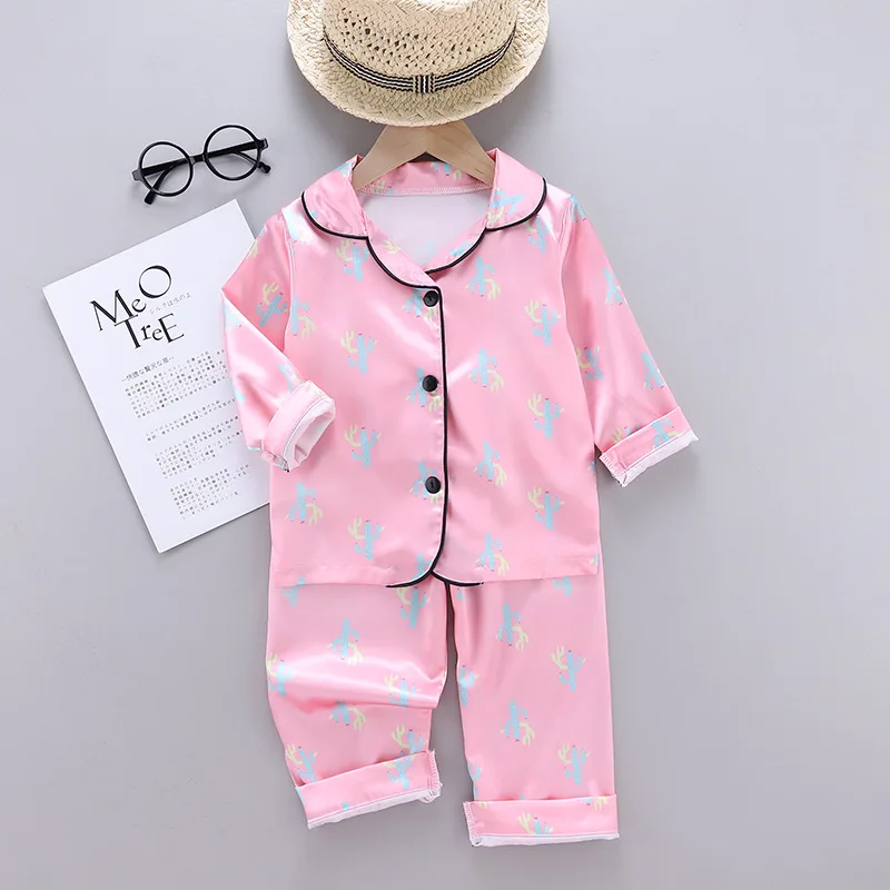 Детские пижамы; Сезон осень-зима; Одежда для сна для мальчиков и девочек; Одежда для сна; Одежда для малышей; Пижамные комплекты с принтом кактуса; Шелковые Детские пижамы; Домашняя одежда