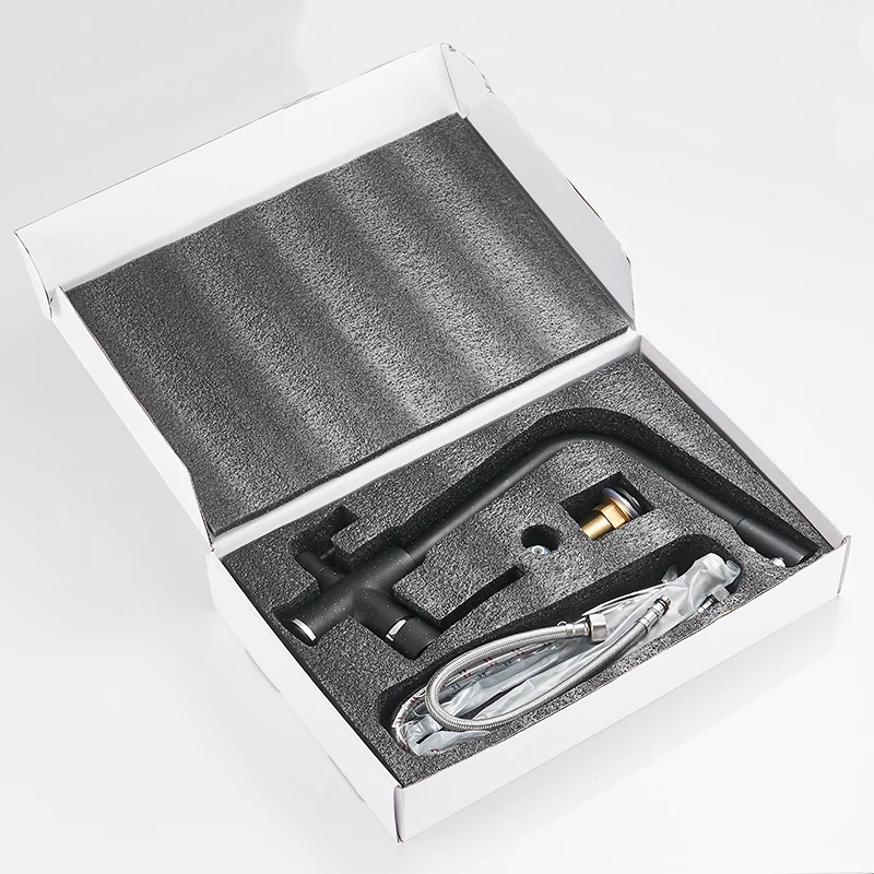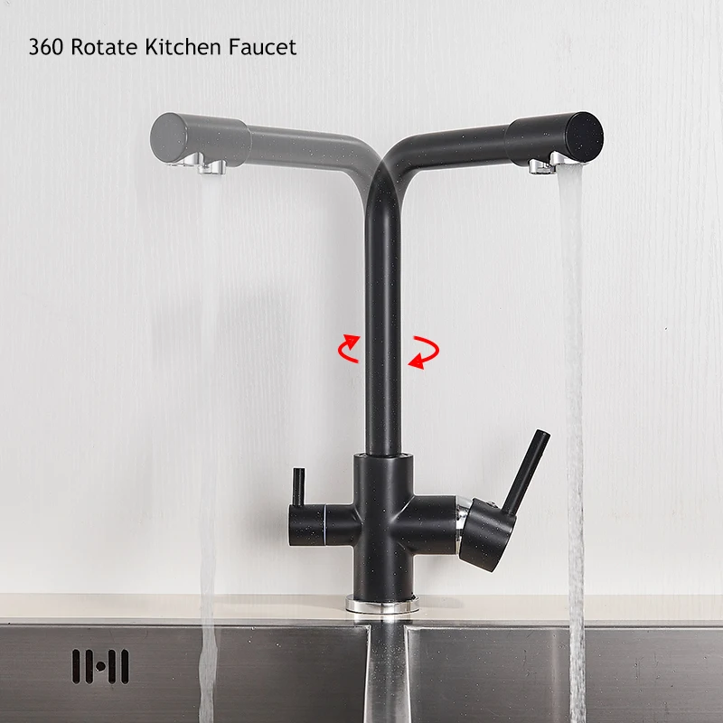 Фильтрованная чистая вода, кухонный кран, Черный кран с креплением на палубу, 360 градусов, кухонный кран для питьевой воды, смеситель для горячей/холодной воды