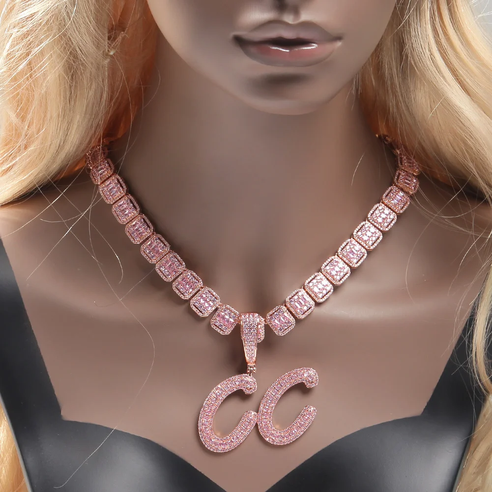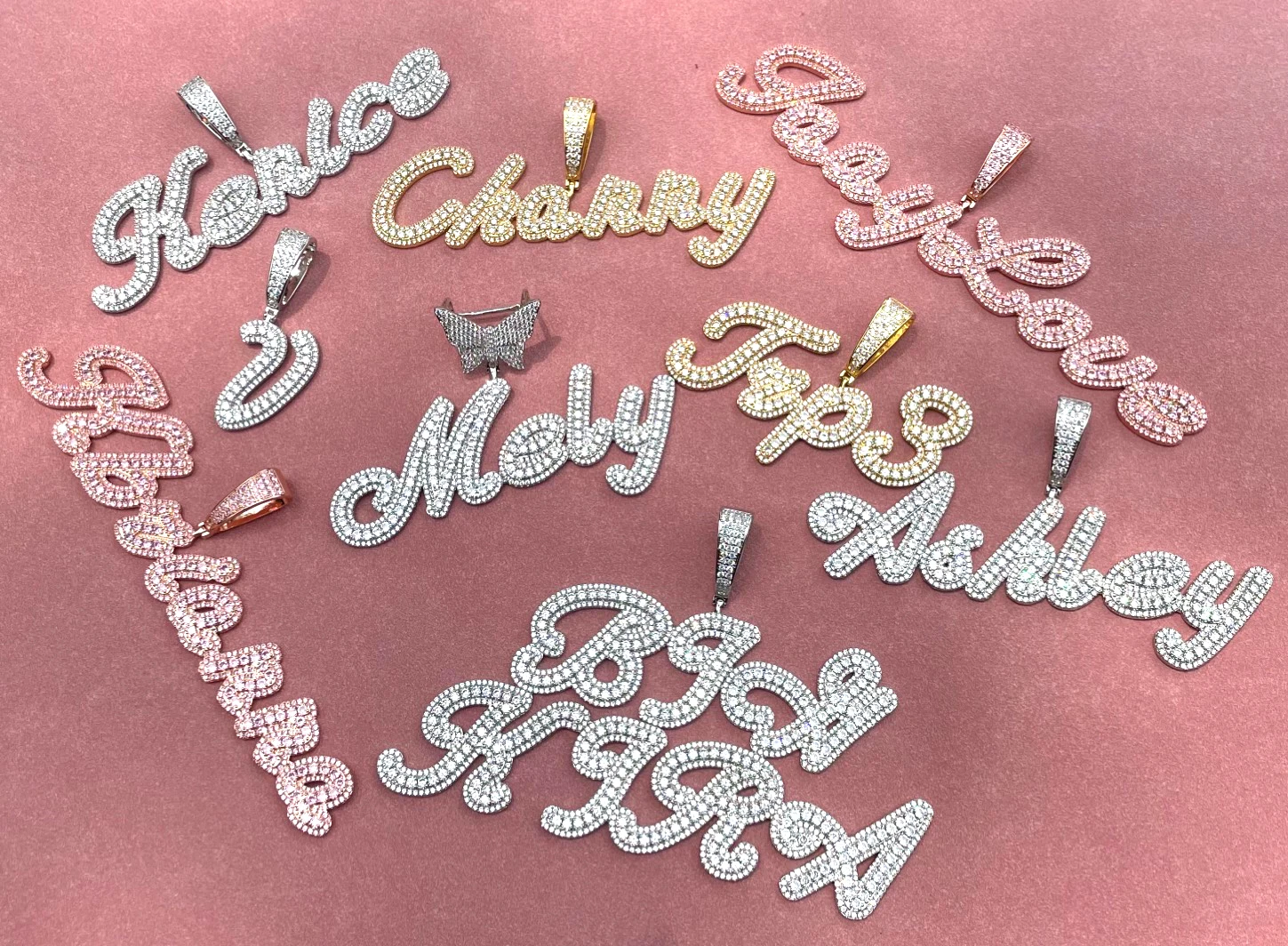 Хип-хоп ювелирные изделия пользовательская кисть курсивная буква два тона имя