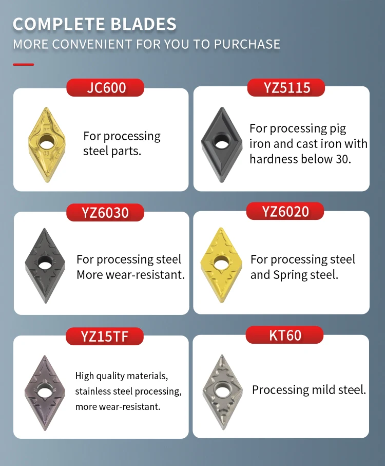 YZ735: используется для обработки нержавеющей стали и уменьшения вибрации инструмента.