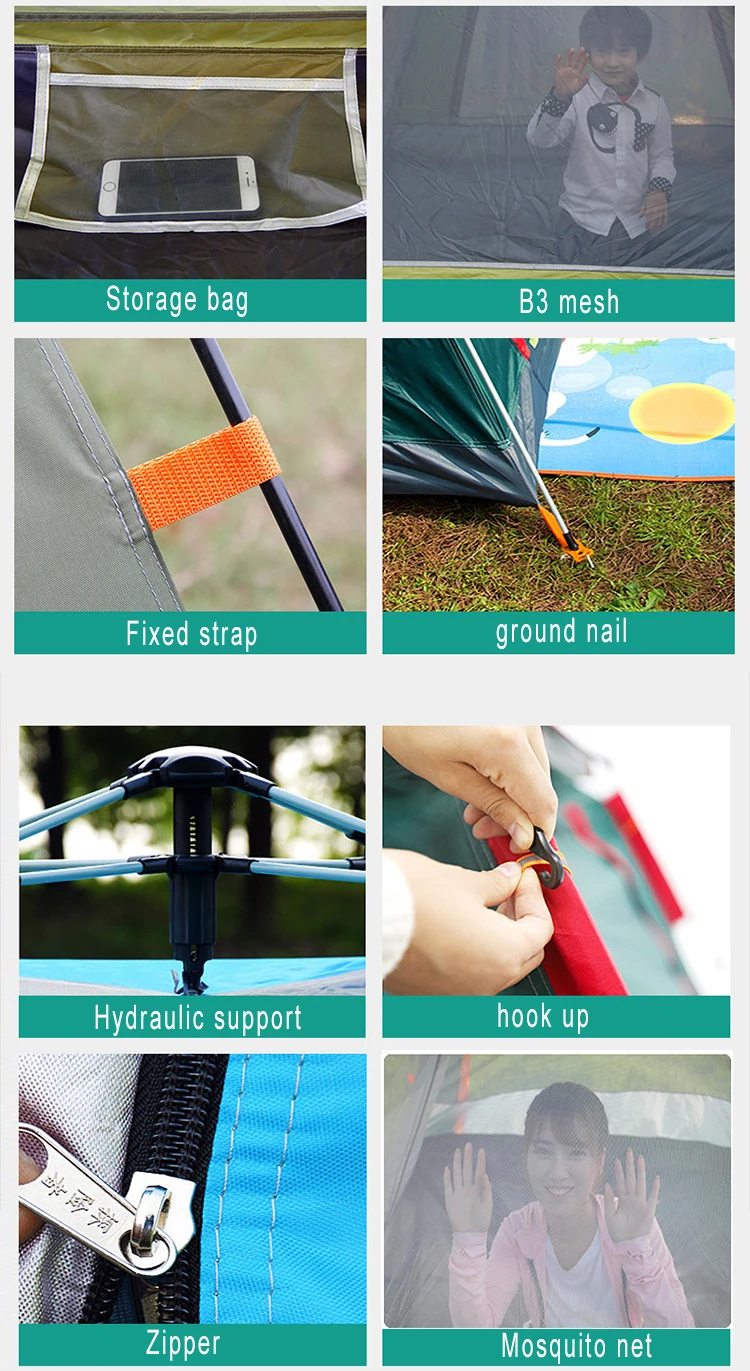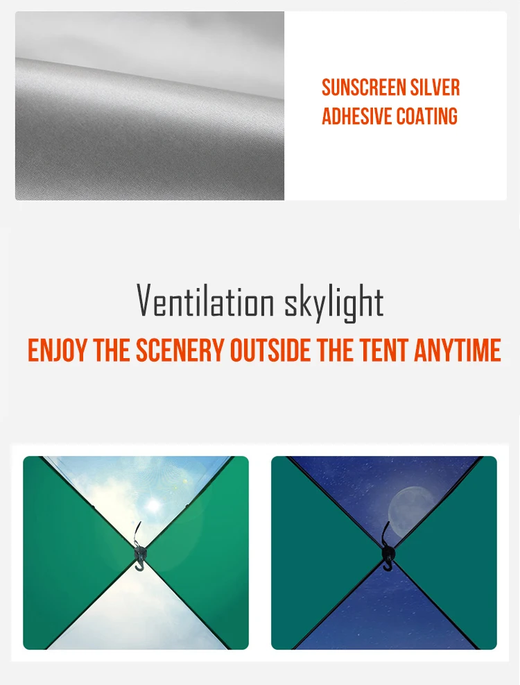Поставляется в удобной сумке для переноски для компактного хранения и легкой транспортировки. Подходит для семейного туризма, альпинизма, кемпинга, музыкальных фестивалей, пикника, самовождения, детского кемпинга на заднем дворе, собаки спят, рыбалки и других видов активного отдыха.