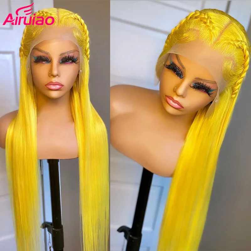 Цветной желтый 613 блонд 13x 4 парик фронта шнурка 30 дюймов прямые человеческие волосы парики для женщин полный HD прозрачный фронтальный Preplcuked