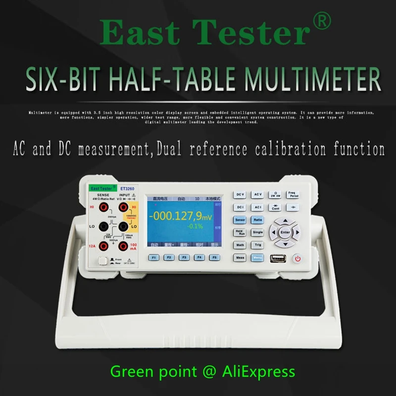 ET3260 мультиметр обеспечивает 6 1/2 знака после запятой, высокого качества, переменного и постоянного тока измерения. Мультиметр оснащен сенсорным дисплеем 3,5-дюймовый цветной дисплей с высоким разрешением и встроенный интеллигентая (ый) Операционная система отличается не только привлекательным дизайном, но и для того, чтобы обеспечить более подробную информацию и функции, простой в эксплуатации, более широкий диапазон испытаний и более гибкое и удобное здание системы. Это новый цифровой мультиметр, который приводит к тенденции развития выше.