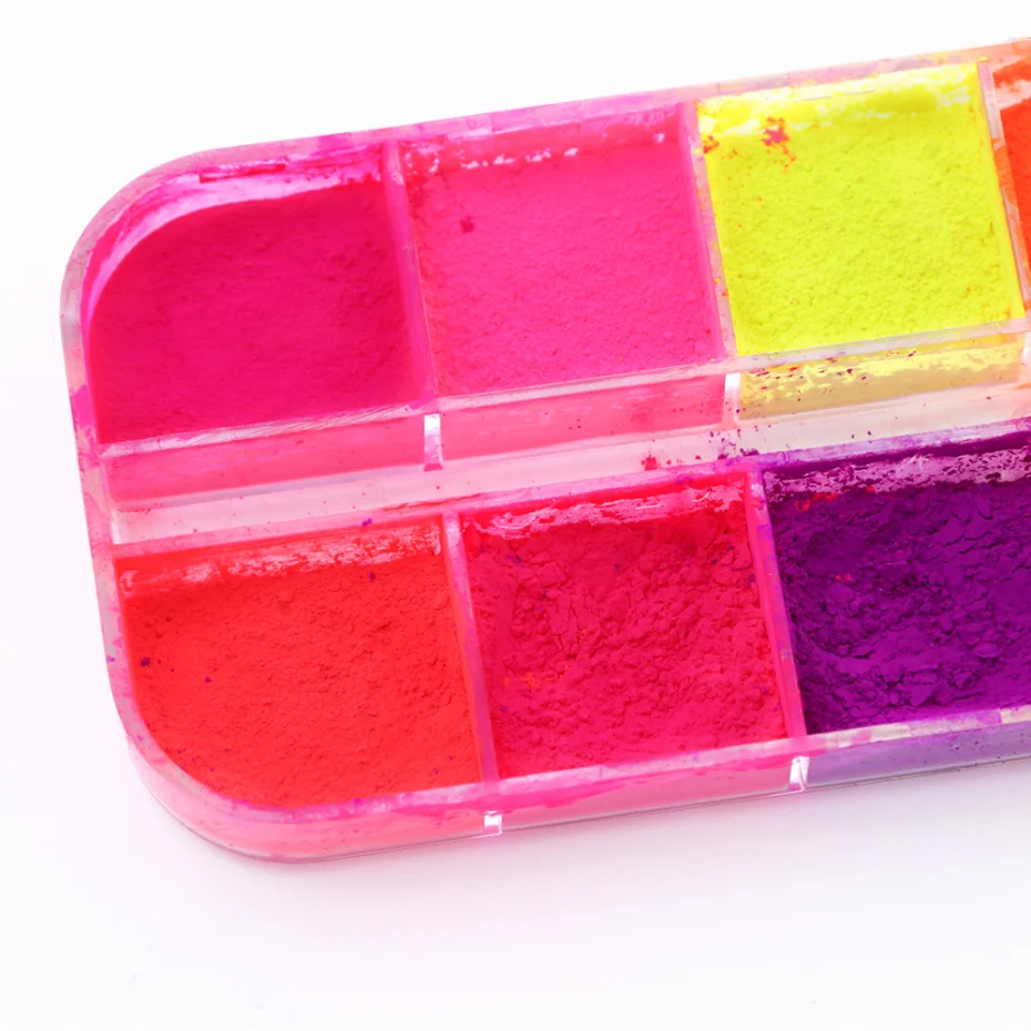 Цвета: флуоресцентный красный, оранжевый, желтый, зеленый, синий, фиолетовый, белый красочный Омбре хромированная пыль