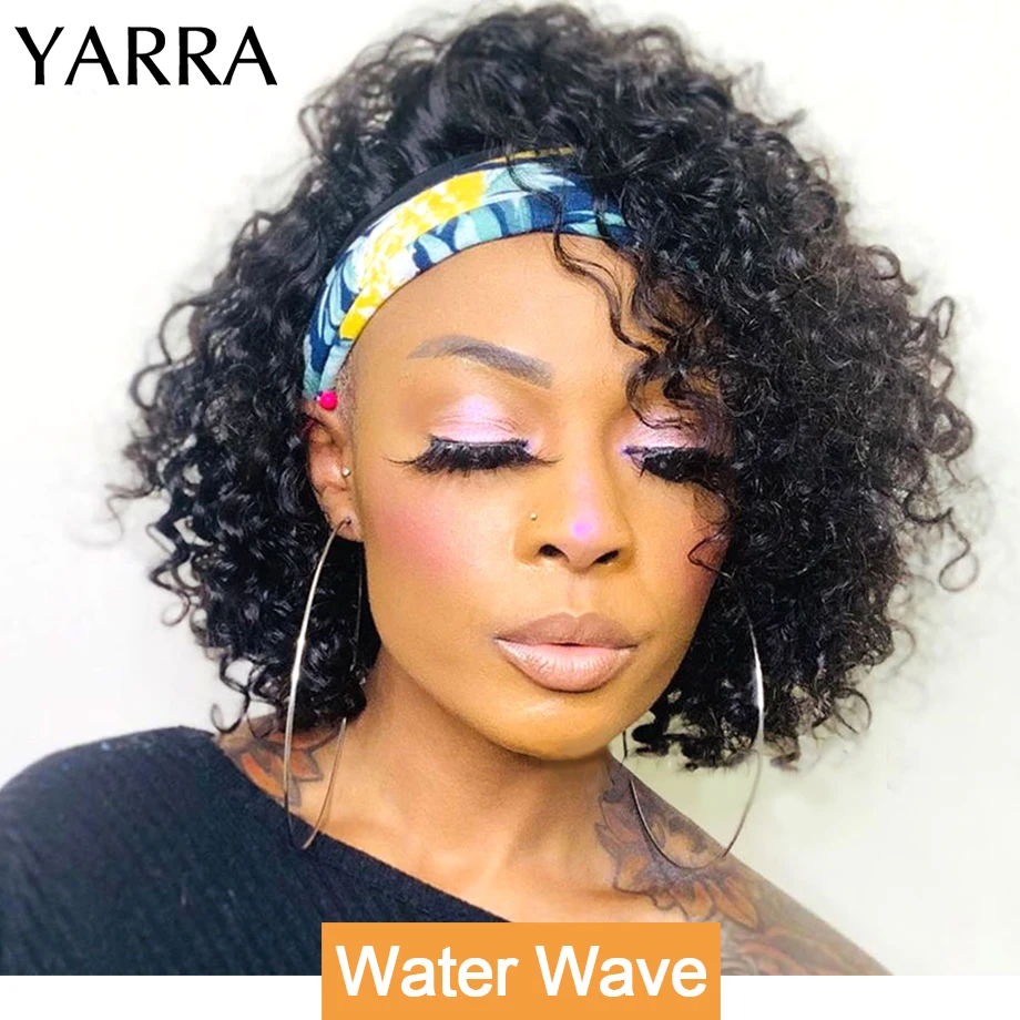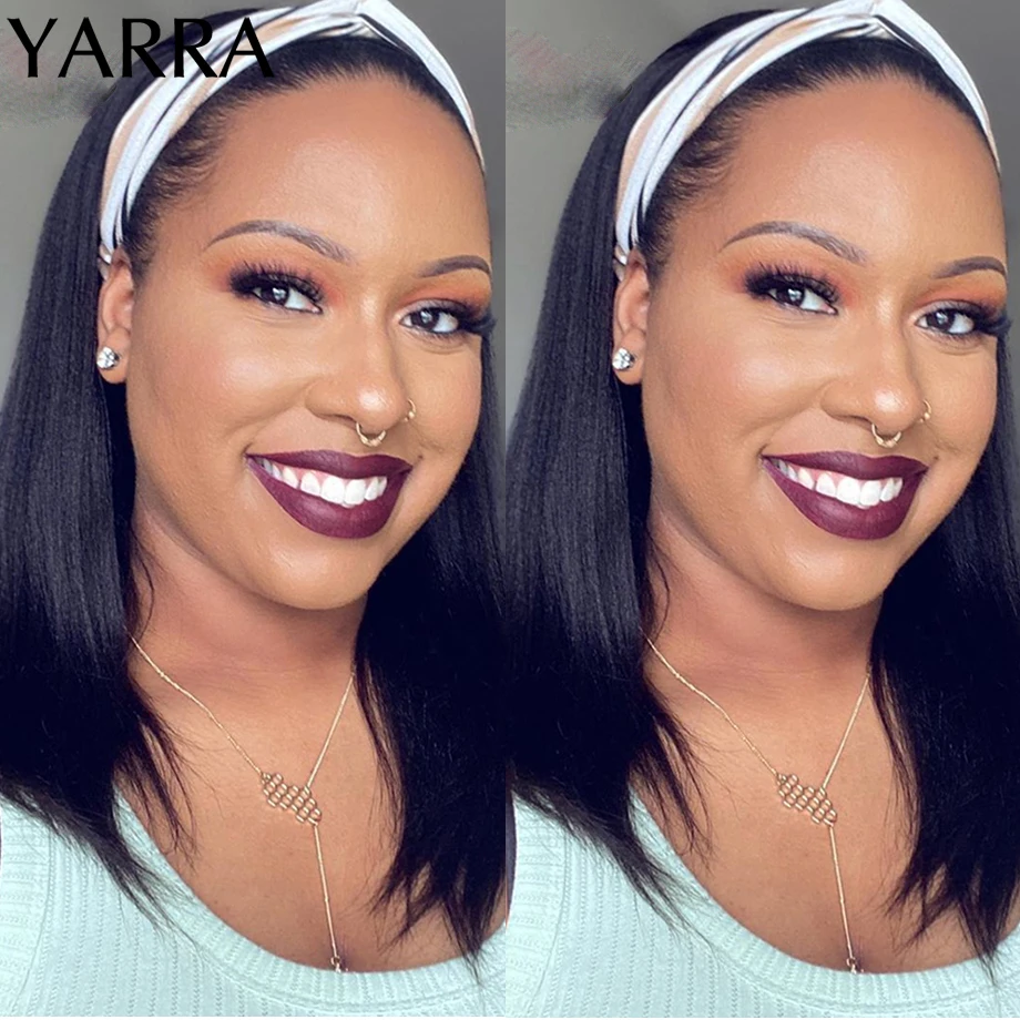 Бразильский прямой парик с головной повязкой, человеческие волосы 10, 12, 14 дюймов, короткие прямые человеческие волосы, крутые парики для лета, без клея