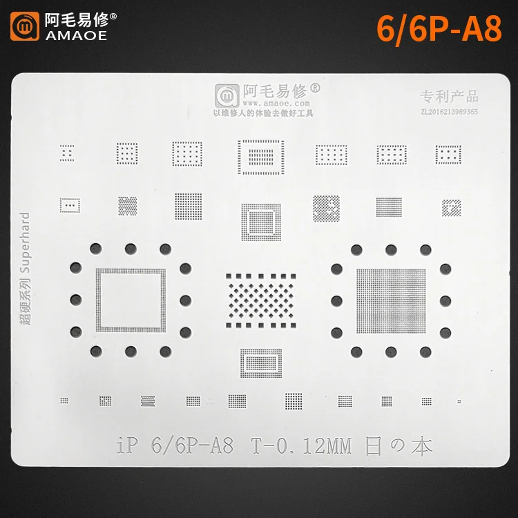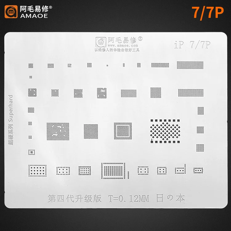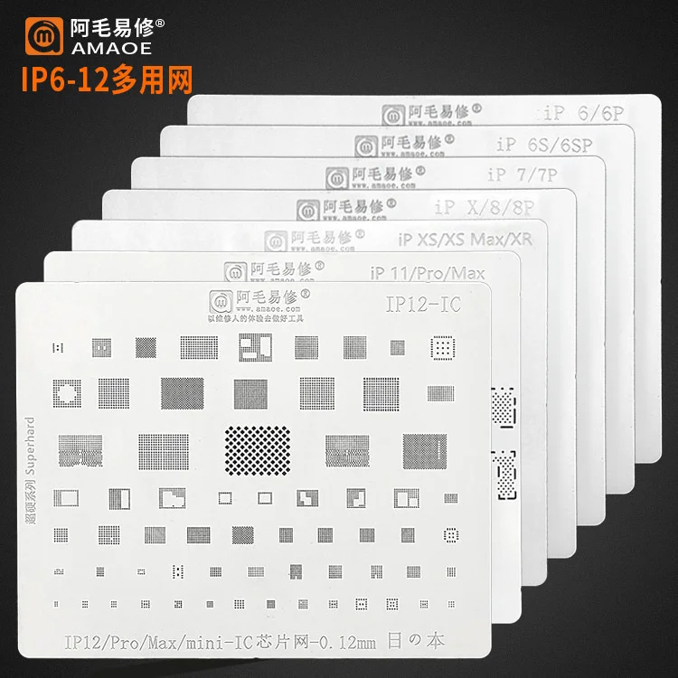 Amaoe BGA набор трафаретов для IPhone 12 Pro Max 11 XS MAX XR X 8P 8 7P 7 6S 6 CPU IC Chip Tin Setting паяльная сеть-- Трафарет из нержавеющей стали высокого качества. -Специально разработан для iPhone 6/6P/6S/6SP/7/7P/8/8P/X/XS MAX/XR/11/11Pro/11 Pro max/12/12 MINI /12 PRO MAX. -Сделайте ремонт проще. -Цвет: черный -- Характеристики: квадратное отверстие -- Мы обещали, что все плиты находятся в совершенно новом состоянии, но этот товар легко поцарапать. Посылка: 1 * Черный трафарет BGA