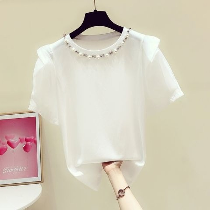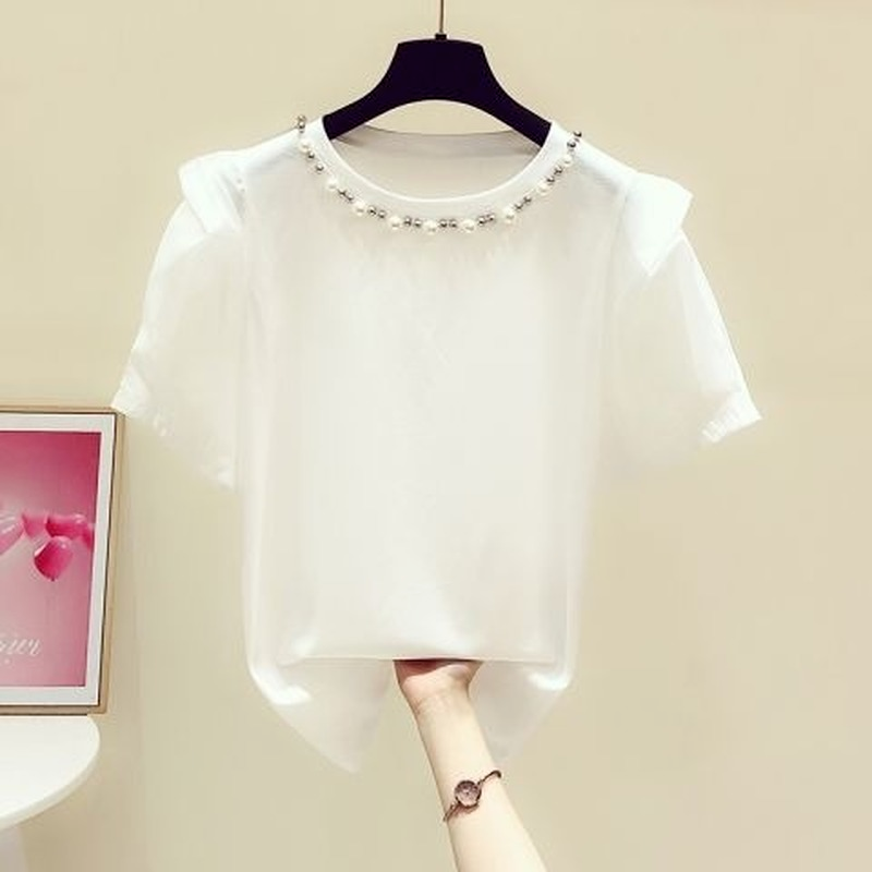 91% белая кружевная футболка Женская эластичная большого размера женская одежда