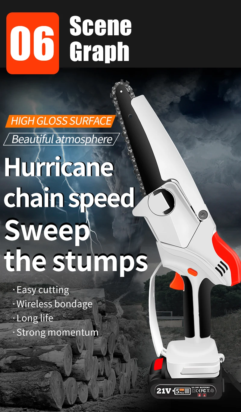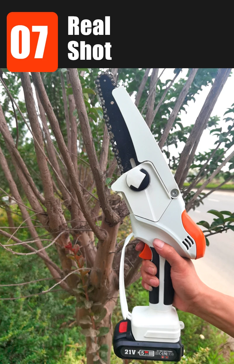 2. Беспроводной дизайн, легкий и портативный, легко носить и пилить дерево.