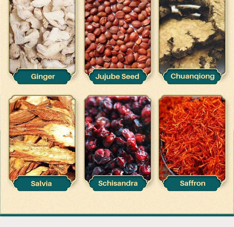 Ингредиент: полынь, имбирь, чуаньцюн, семена Джубе, салвия, шафран, шисандра