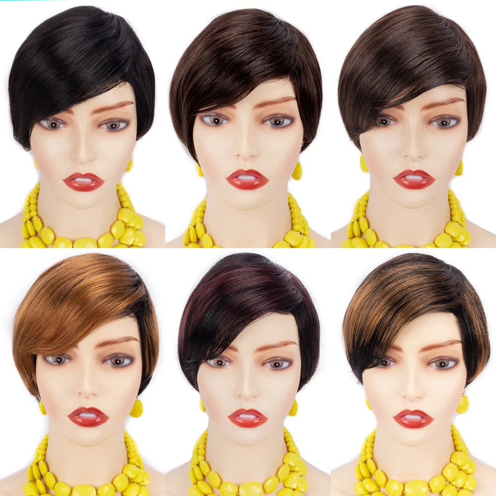Прямые короткие парики "Пикси" из натуральных черных волос Реми, сделанные на машине из бразильских человеческих волос, с малышкой для женщин.