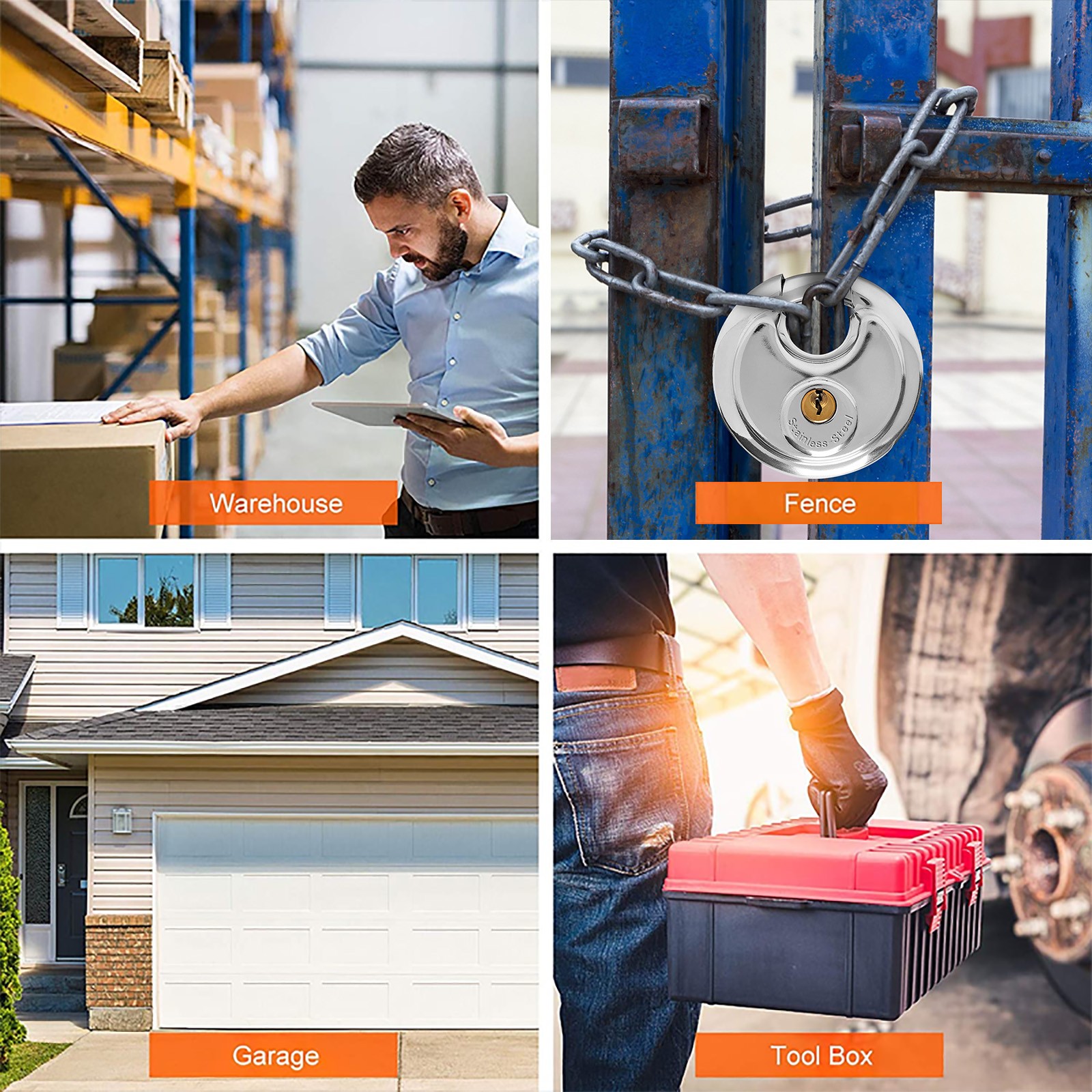 Применение навесного замка: Идеально подходит для подставок, складских единиц, гаражей и сараев, прицепов, мобильных грузовиков, уличные ворота, складов, логистики, дверей, хранения, передвижных грузовиков и т. д.