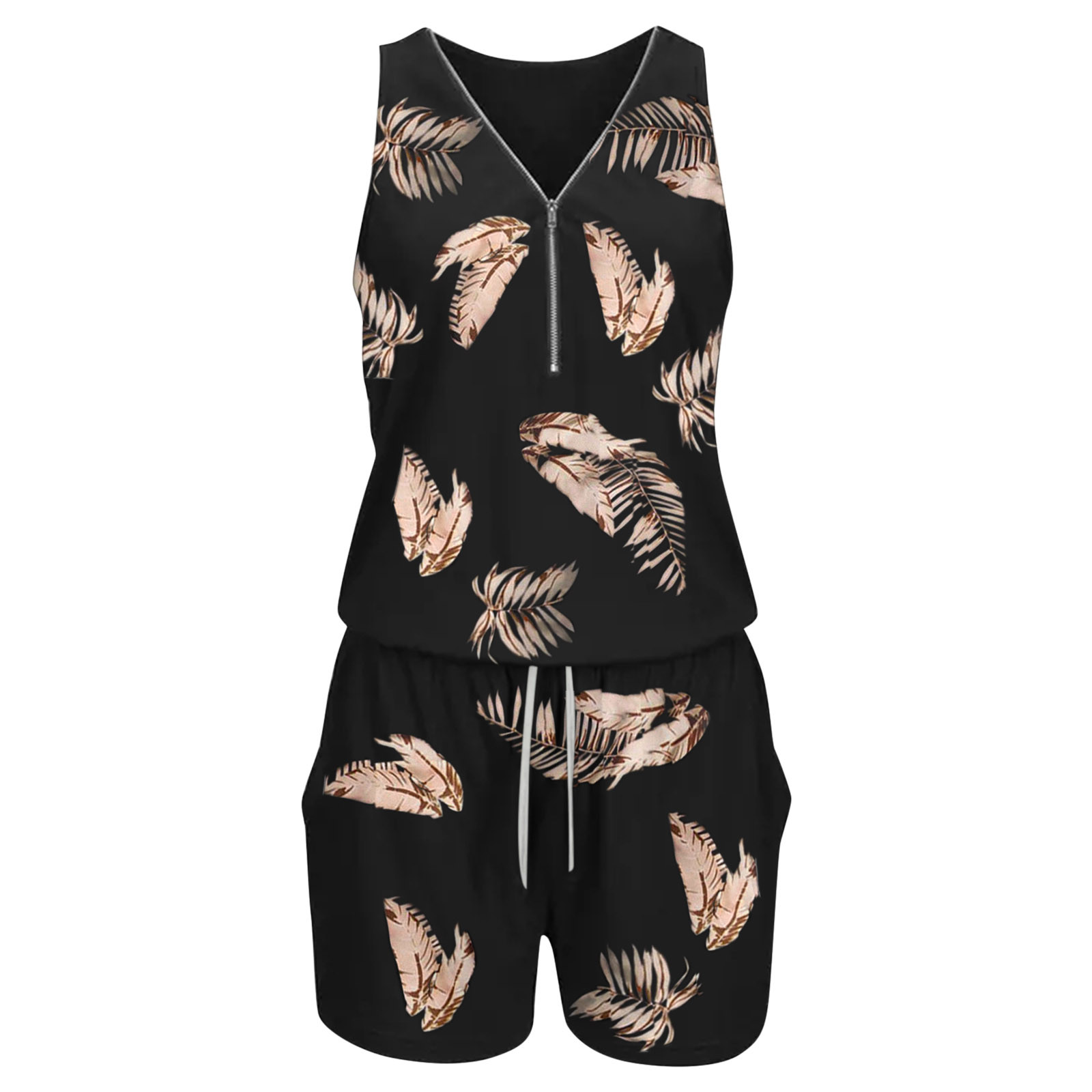 Женский короткий пляжный комбинезон без бретелек без рукавов; Летний комбинезон