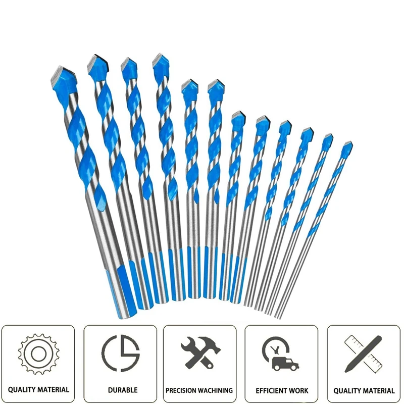 Акция! 12 шт. набор сверл для кладки 3 мм до 12 мм Твердосплавные наконечники для стен, кирпича, цемента, бетона, стекла, дерева