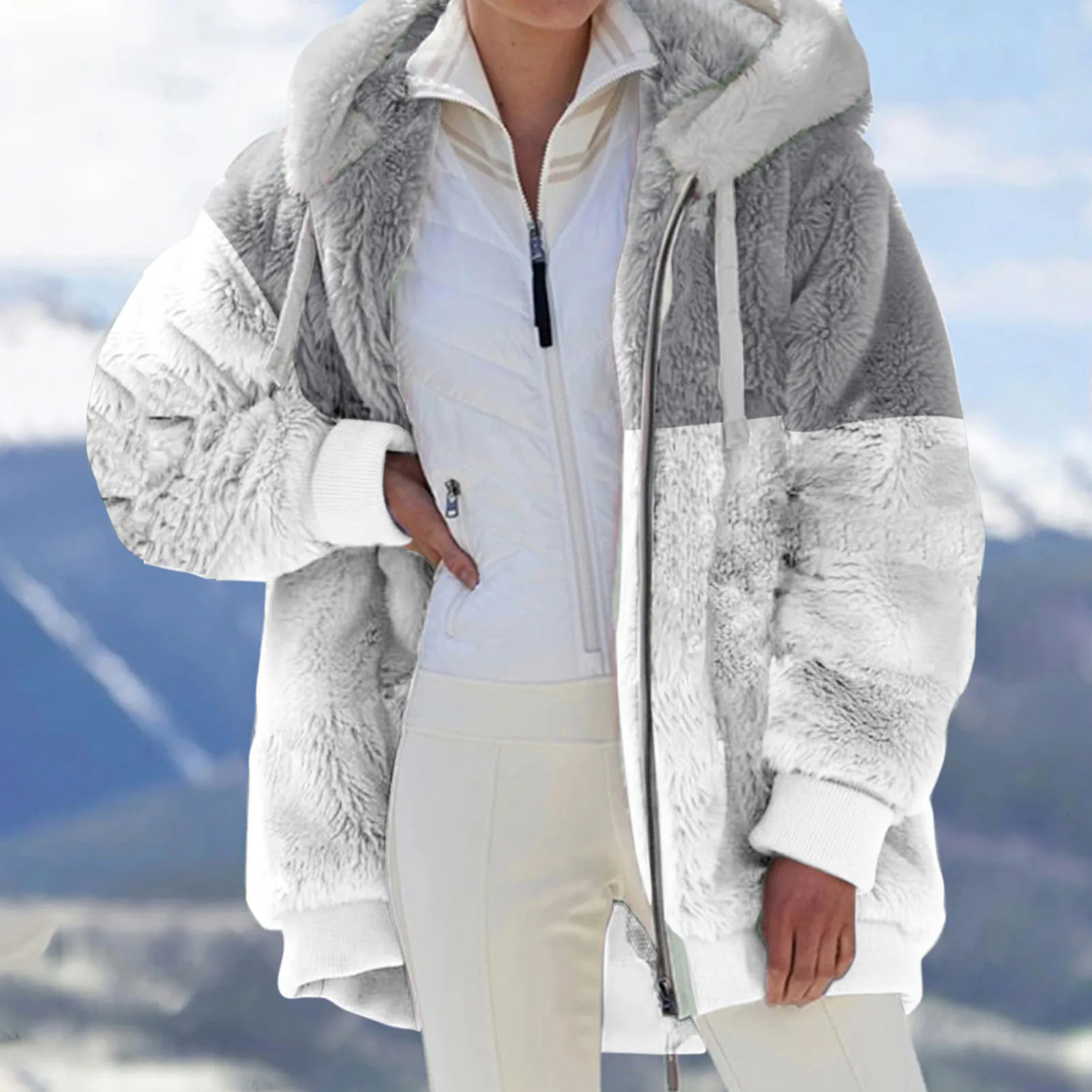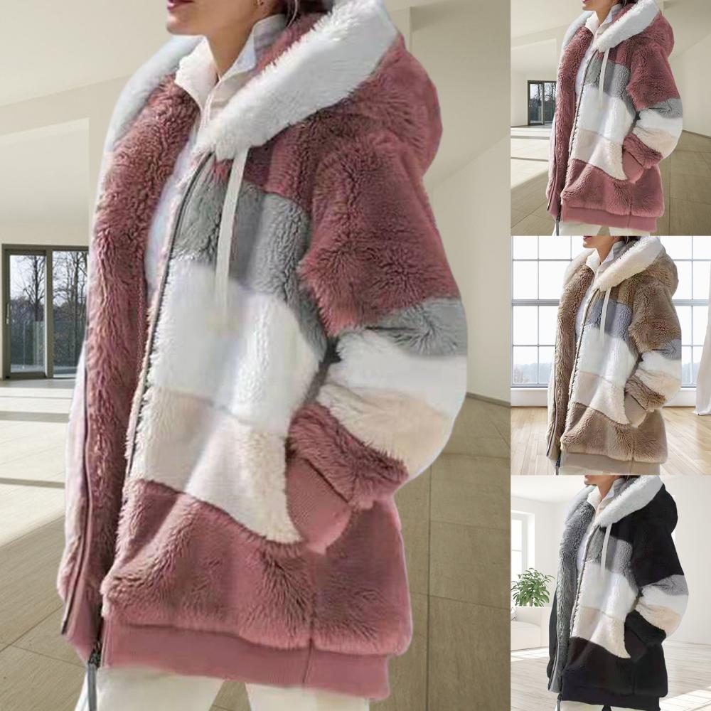 Женская зимняя куртка, модное плюшевое пальто в стиле пэчворк, Женская Повседневная теплая куртка с капюшоном на молнии, большие свободные стеганые клетчатые пальто