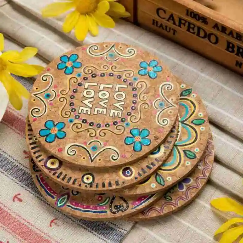 4 шт красочные круглый пробковые подставки кофейные чашки для чая Креативные украшения коврик для стола вечерние коврики кухонные принадлежности